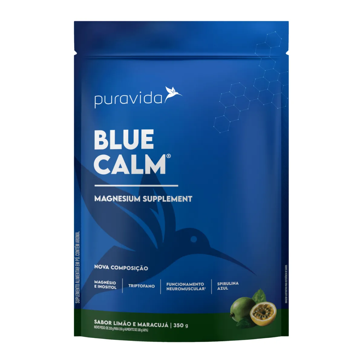 Suplemento de Magnésio Puravida Blue Calm Limão e Maracujá 350g