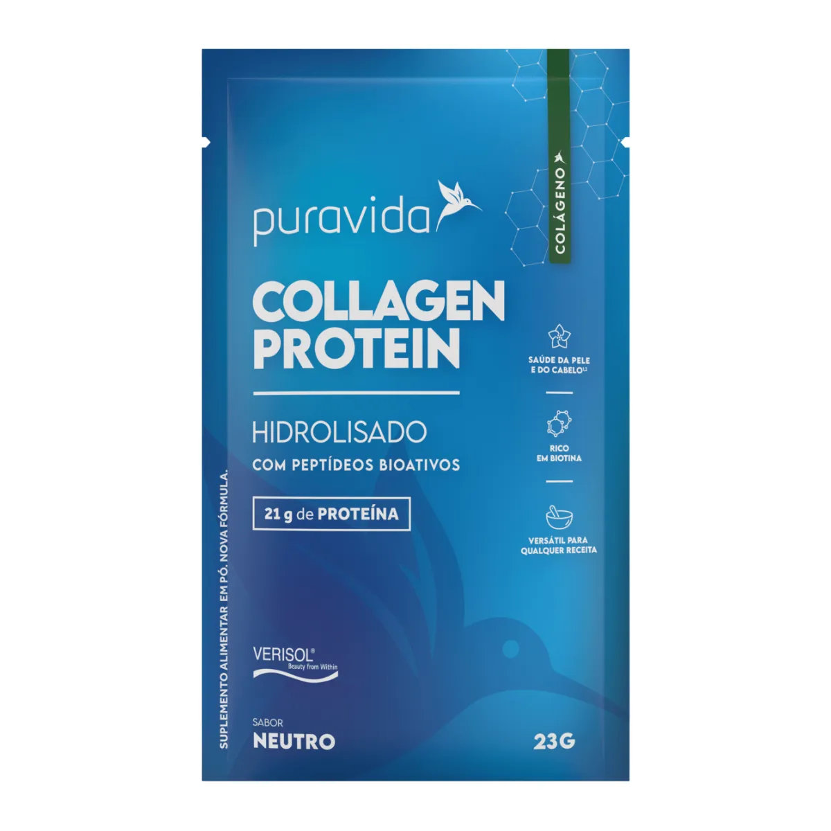 - Puravida Collagen Protein Neutro contém colágeno Verisol®, referência mundial em qualidade.