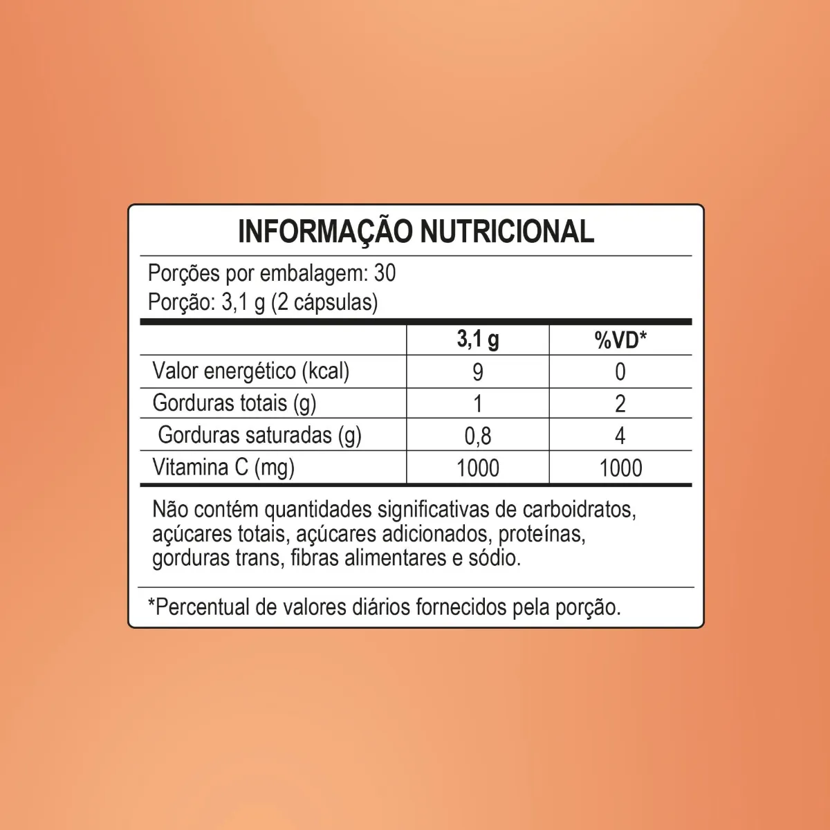 1 dose (2 cápsulas) contém 1000mg de vitamina C.