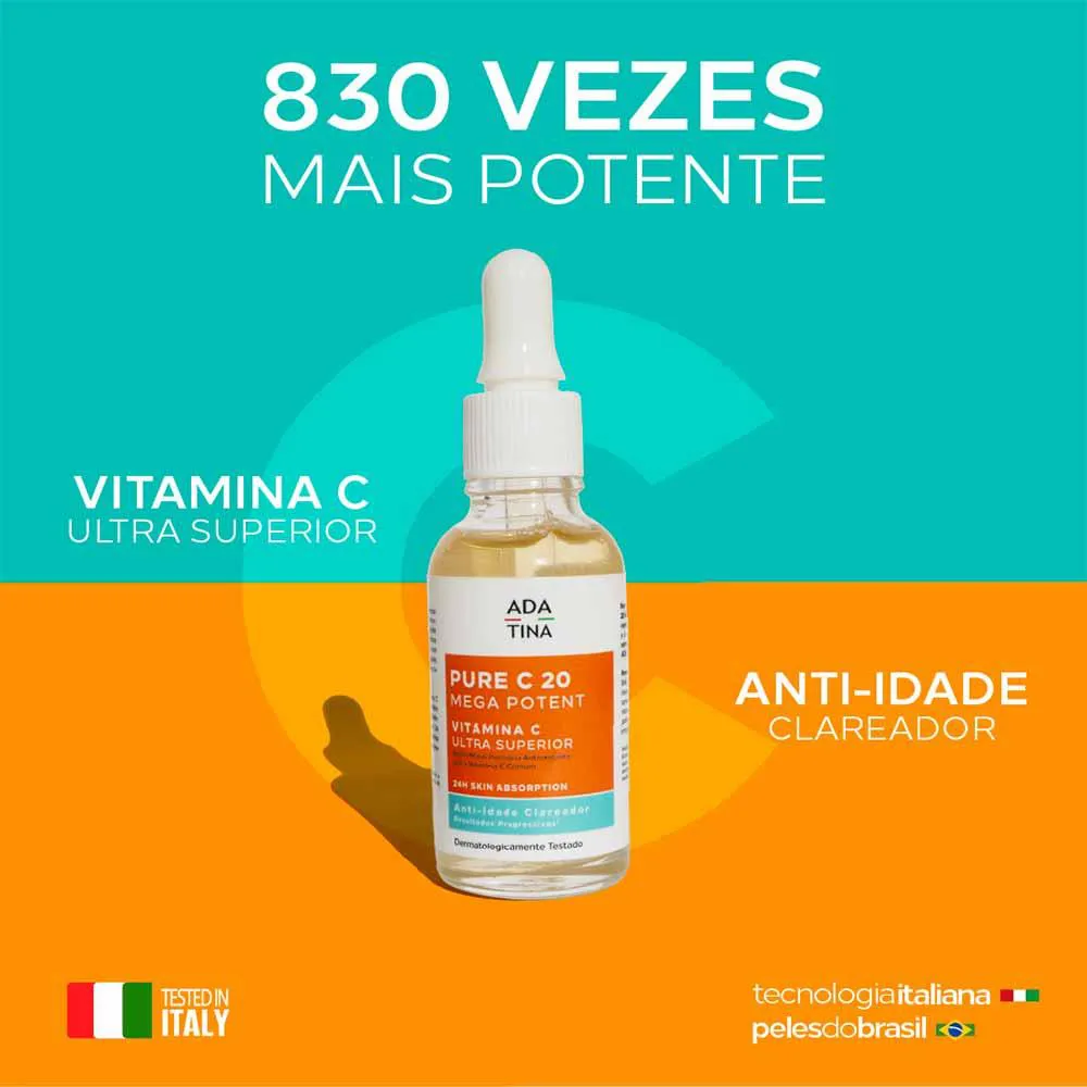Pure C 20 Mega Potent Sérum: Vitamina C Ultra Superior Clareador Anti-Idade Ada Tina 30ml