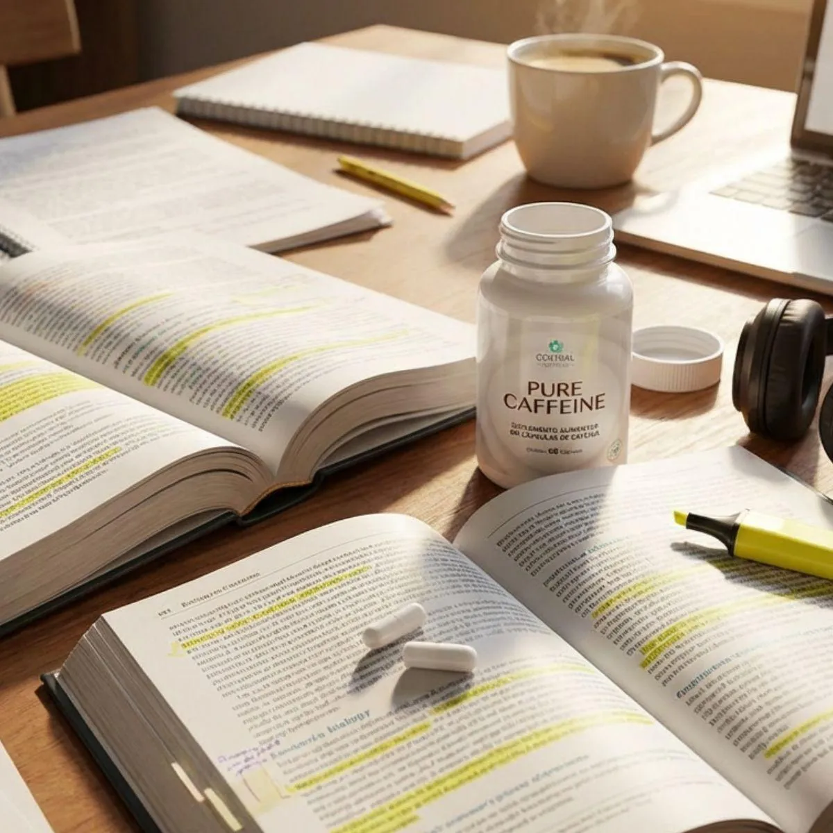 - Suporte energético natural com dosagem precisa de 200mg de cafeína por cápsula.