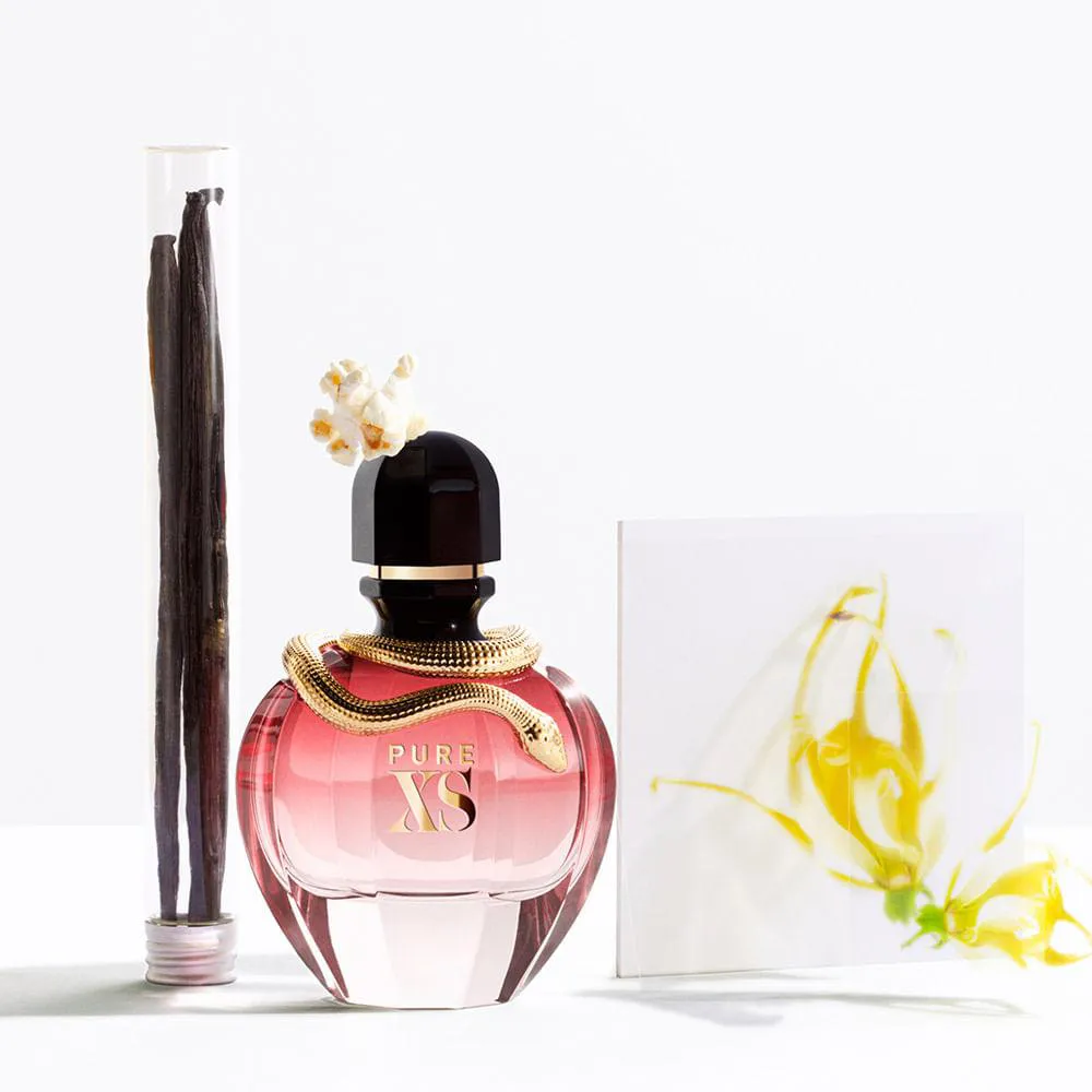 Pure XS for her é o excesso em seu estado mais puro. Um floral Oriental selvagem e provocante de Paco Rabanne, com a eletrizante Emily Ratajkowski. Ylang-ylang para os brutos, os indomados, inflamam os sentidos. Um estouro de pipoca. Hilariante, explosiva. Excesso em seu estado mais puro!