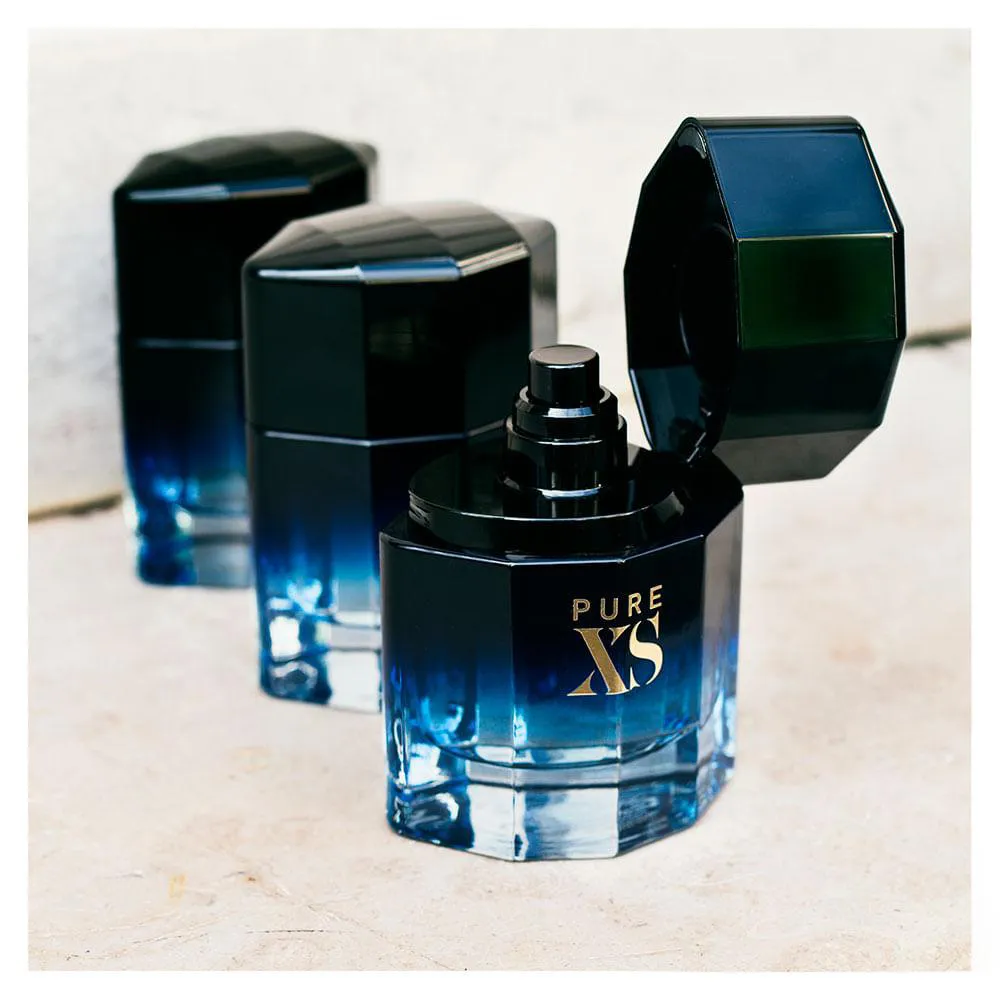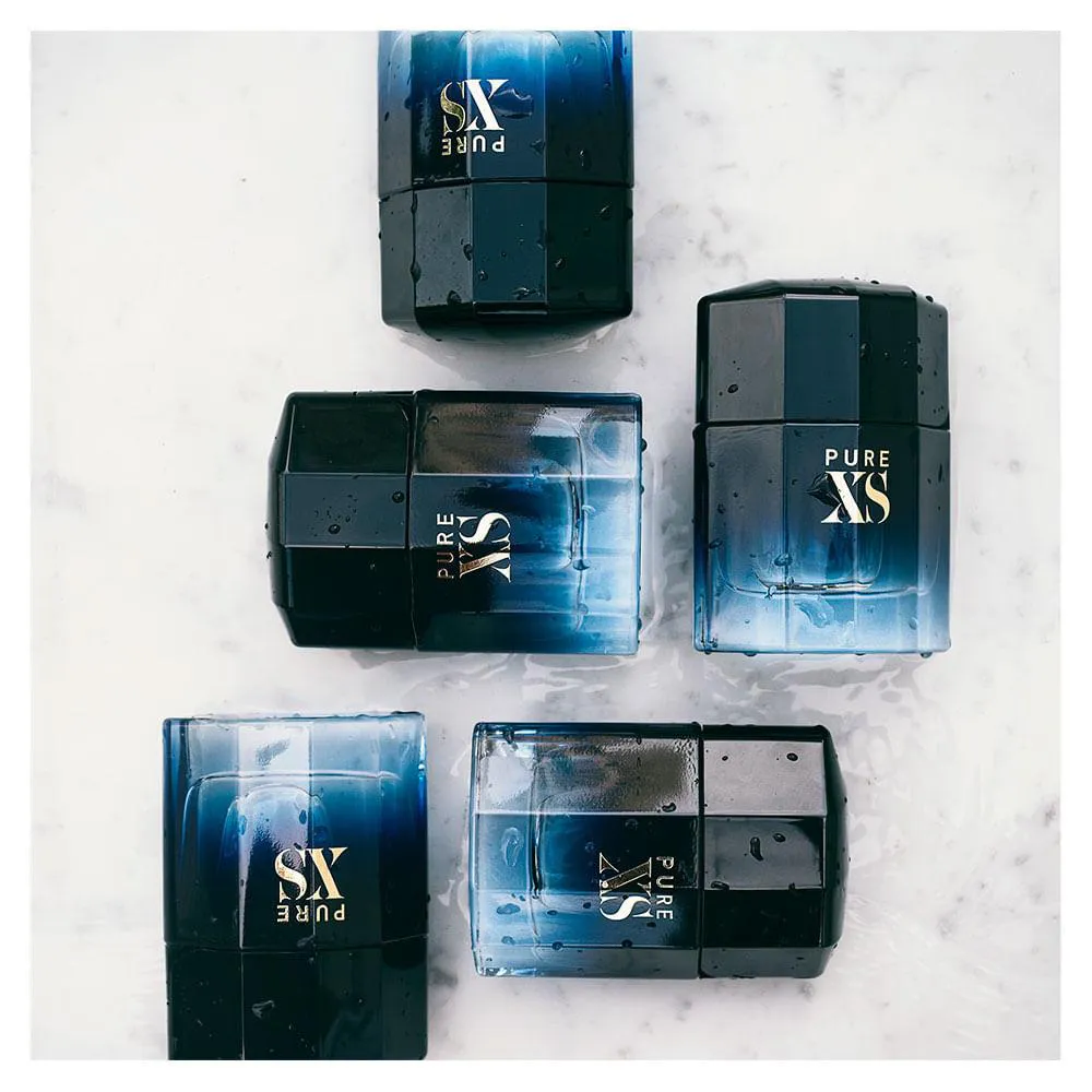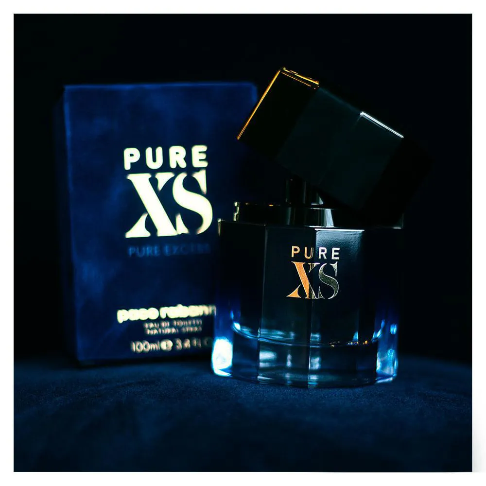 O perfume masculino Pure XS é o excesso em seu estado puro, fantasia implícita, explícita e autêntica. Pure XS é a dualidade de um homem com educação nobre e poder sexual. Ele combina decência e ousadia, vício e virtude com resultados magnéticos. O nome se entrega aos extremos. Pure (puro), como a pureza da beleza masculina ou do desejo e do erotismo.