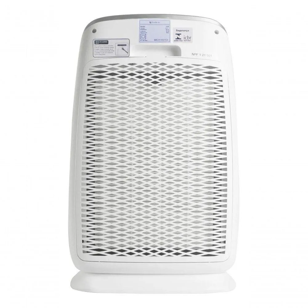 CARACTERÍSTICAS Compacto Portátil Leve 3 filtros Filtro Nível Hospitalar Timer Função Lock Silencioso Modo noturno 4 velocidadesINFORMAÇÕES TÉCNICAS Fonte de alimentação (V): 127V ou 220V Potência: 28W (110V) / 33W (220V) Dimensões (cm): A 59 x L 38 x P 25,8 Peso bruto: 4,5Kg Peso líquido: 4,56Kg Purificação: até 99,97% Composição: Plástico ABS Cor: Branco Corrente (A): 0,22 (110V) / 0,15 (220V) Ruído: 34,5dB Volume de ar/hora: 162,81m³/h Garantia: 1 Ano Certificação: INMETRO Acessórios: Manual de Instruções Recomendações: Instalar com pelo menos 30 cm de distância da parede Melhoria da Qualidade de Ar Side handle for transportation Defrost function -->