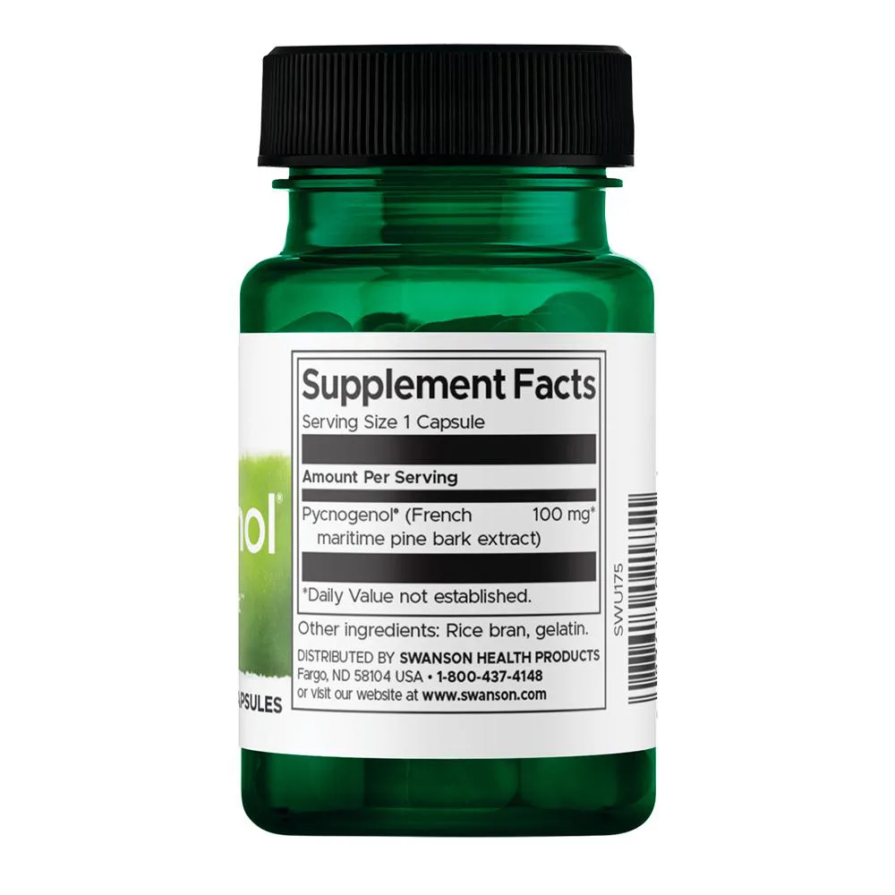 Pycnogenol Swanson 100mg com 30 Cápsulas de Extrato de Casca de Pinheiro Marítimo Francês, Suplemento Flavonoide de Alta Biodisponibilidade com Procianidinas e Ácidos Fenólicos para o Dia a Dia