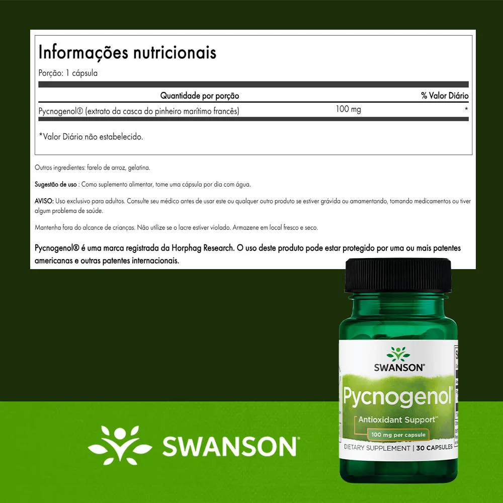 Pycnogenol 100Mg Swanson 30 Cápsulas Suporte Antioxidante