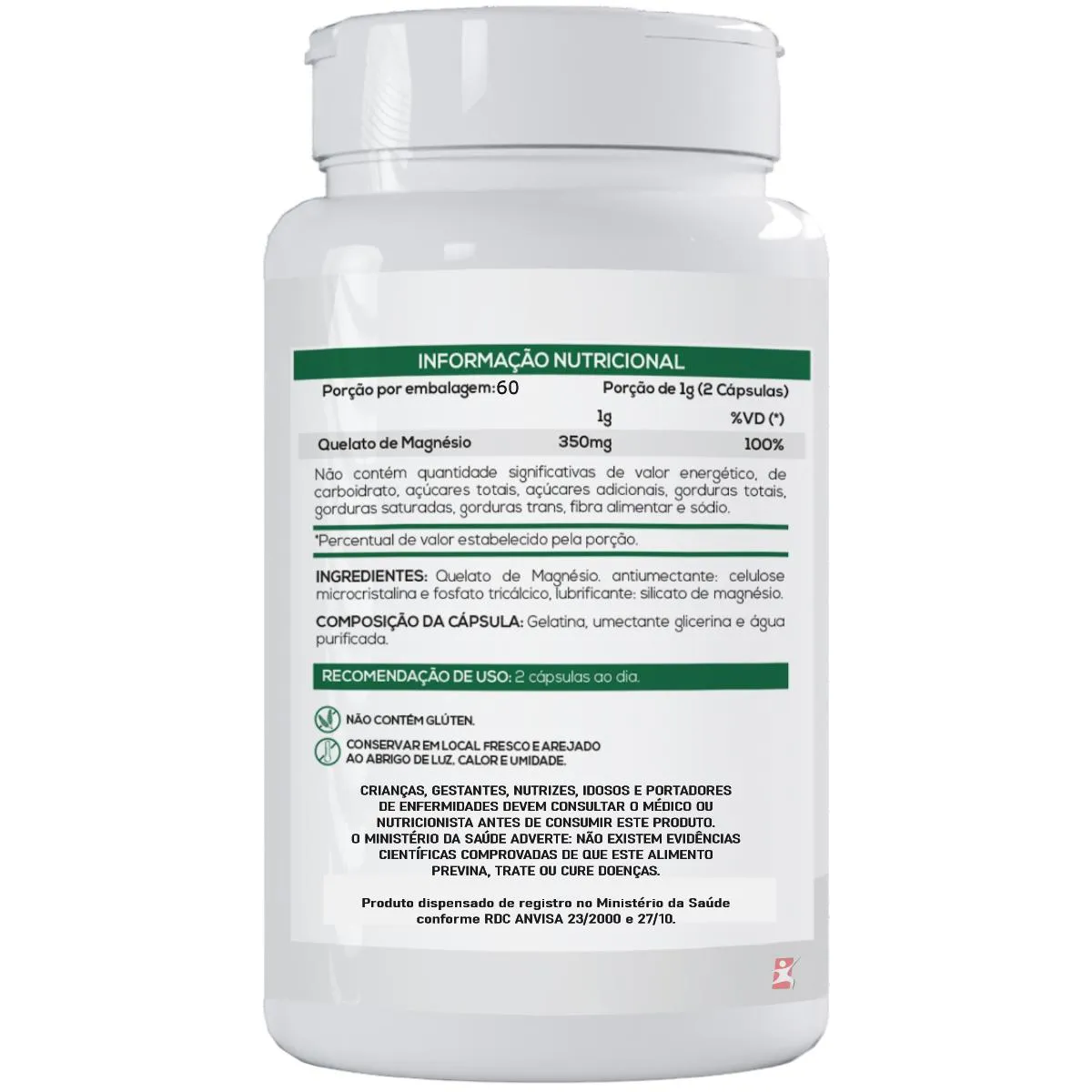 - 350mg de Quelato de Magnésio por porção – 2 cápsulas;