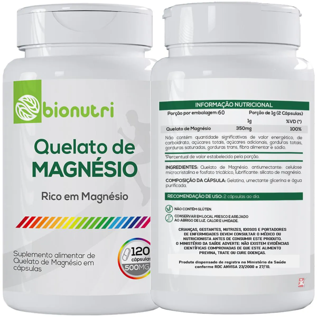 1 Unidade do produto: QUELATO DE MAGNÉSIO CONCENTRADO 100% IDR 120 CÁPSULAS – BIONUTRI.