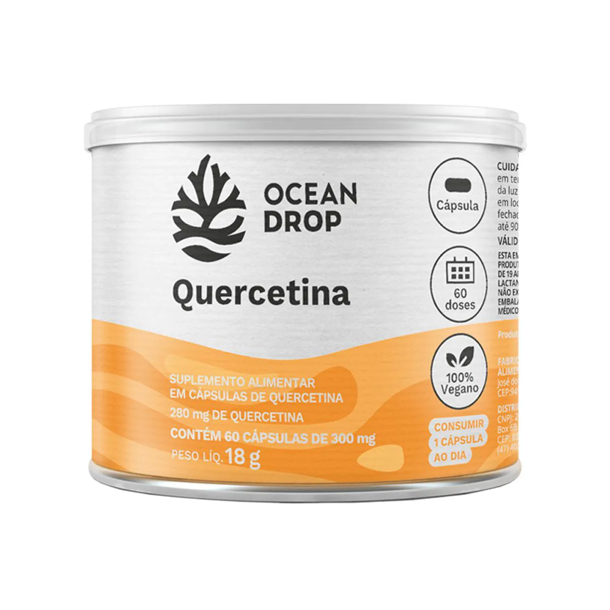 Quercetina Ocean Drop 60 Cápsulas é um suplemento natural formulado com quercetina anidra, um potente composto vegetal conhecido por suas propriedades. A quercetina é um flavonoide que pode auxiliar no equilíbrio do organismo, sendo uma excelente opção para quem busca manter uma rotina saudável. A fórmula é vegana, livre de glúten e lactose, oferecendo praticidade e qualidade. Ingredientes: Quercetina anidra