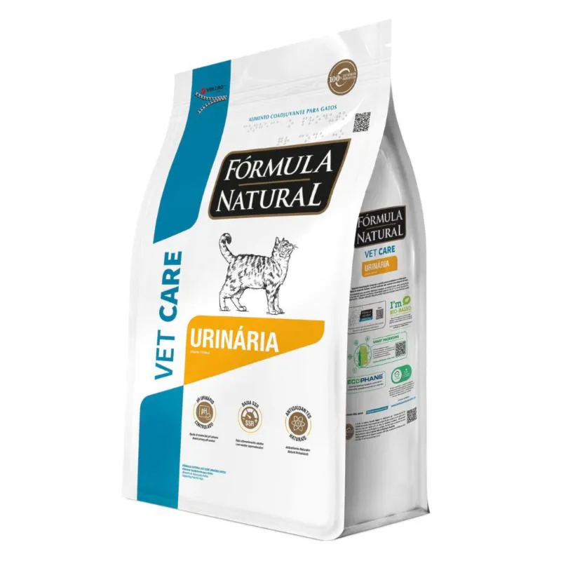 Problemas urinarios em gatos, como a formacao de cristais e calculos, causam dor intensa e podem ser extremamente perigosos. A Formula Natural Vet Care Urinario e um alimento coadjuvante de ultima geracao, desenvolvido especificamente para auxiliar na dissolucao de calculos de estruvita e na prevencao de sua recorrencia, promovendo um sistema urinario muito mais saudavel.Sendo uma linha Grain Free (livre de graos), ela respeita a natureza carnivora dos gatos, oferecendo uma nutricao de alta absorcao, sem corantes e conservada naturalmente, ideal para felinos que precisam de cuidados especiais com maxima pureza.Destaques e Beneficios Principais: