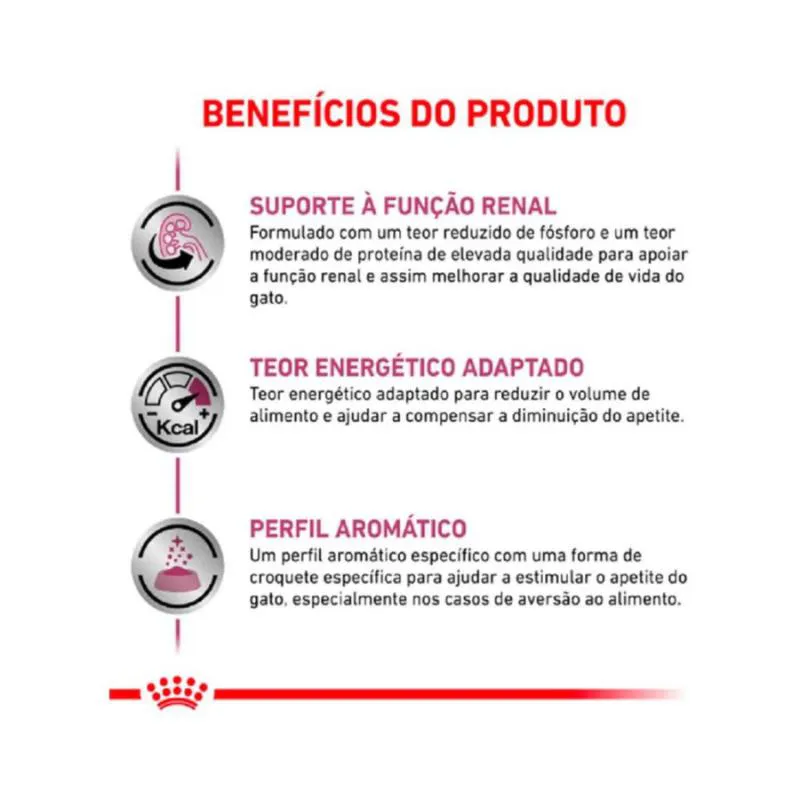 - Estimulacao do Apetite: Perfil aromatico exclusivo desenvolvido para vencer a seletividade alimentar comum em gatos com desgaste renal.
