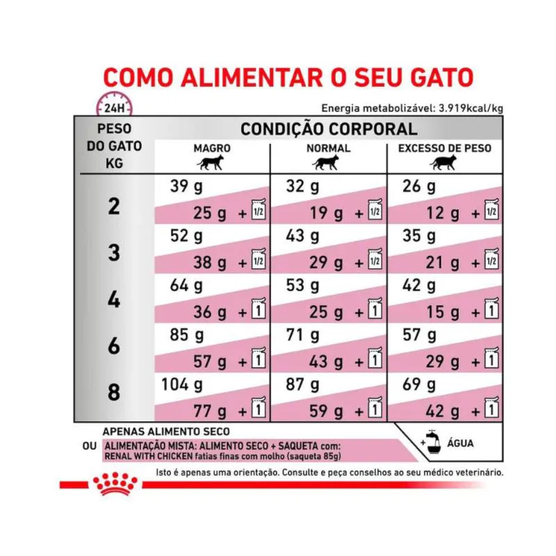 A insuficiencia renal exige uma mudanca de habito vitalicia. Para tutores que buscam garantir o tratamento completo com economia e praticidade, a Royal Canin Renal de 4kg e a escolha ideal. Este alimento coadjuvante e formulado com tecnologia de ponta para reduzir a sobrecarga sobre os rins, controlando os niveis de fosforo e oferecendo proteinas de altissima qualidade.Manter o seu gato na dieta renal de forma continua e o fator mais importante para evitar crises, reduzir o acumulo de toxinas no sangue e proporcionar mais anos de vida com bem-estar ao seu pet.Destaques e Beneficios Principais:
