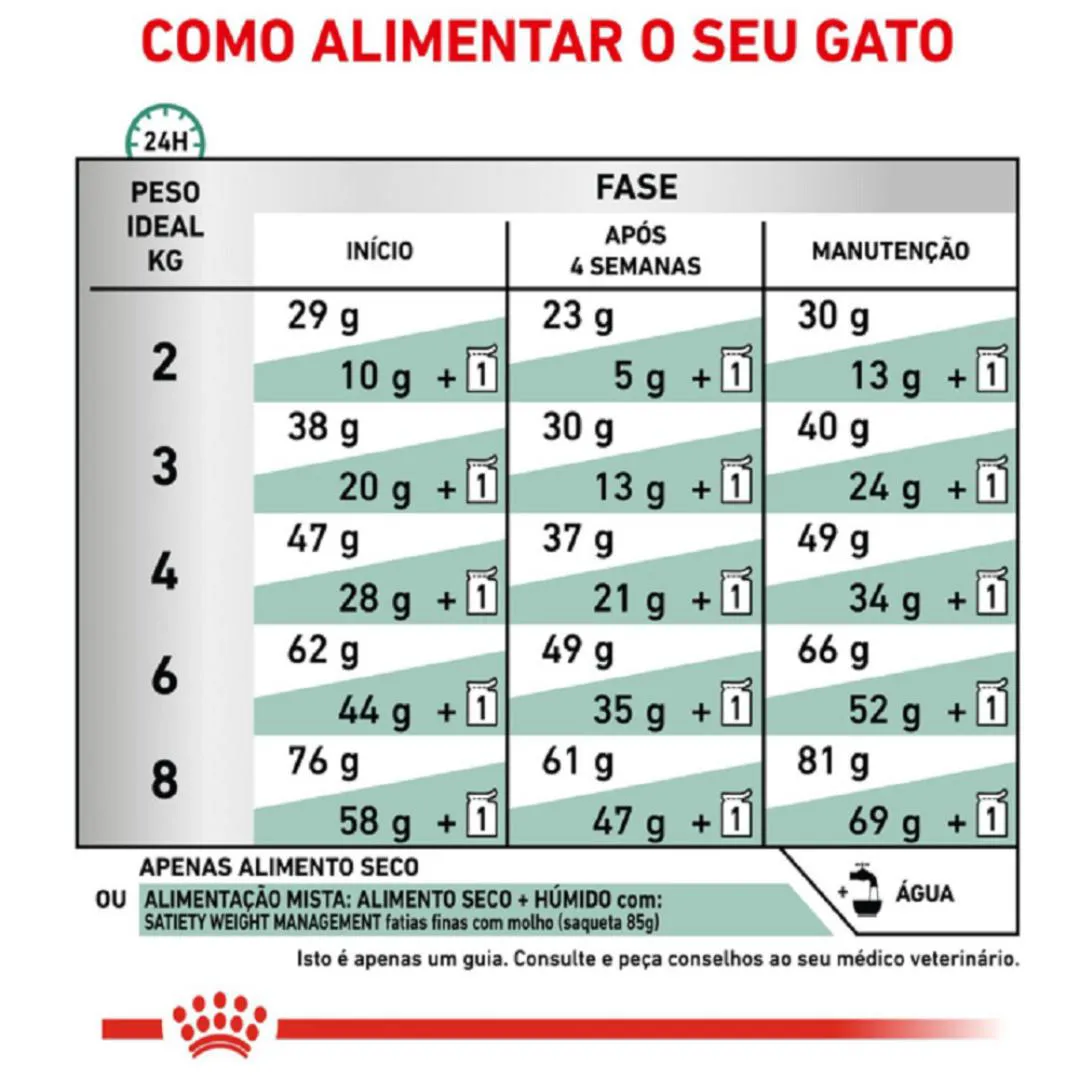 Seu gato precisa perder peso, mas parece estar sempre com fome? O comportamento de implorar por comida é um dos maiores obstáculos no emagrecimento pet. A Royal Canin Satiety Support foi desenvolvida para acabar com esse ciclo, proporcionando uma perda de peso eficaz e mantendo o seu gato satisfeito entre as refeições.Com uma combinação exclusiva de fibras, esta dieta veterinária garante que o animal se sinta saciado, reduzindo o estresse do tutor e do próprio felino durante o processo de redução calórica.Destaques e Benefícios Principais: