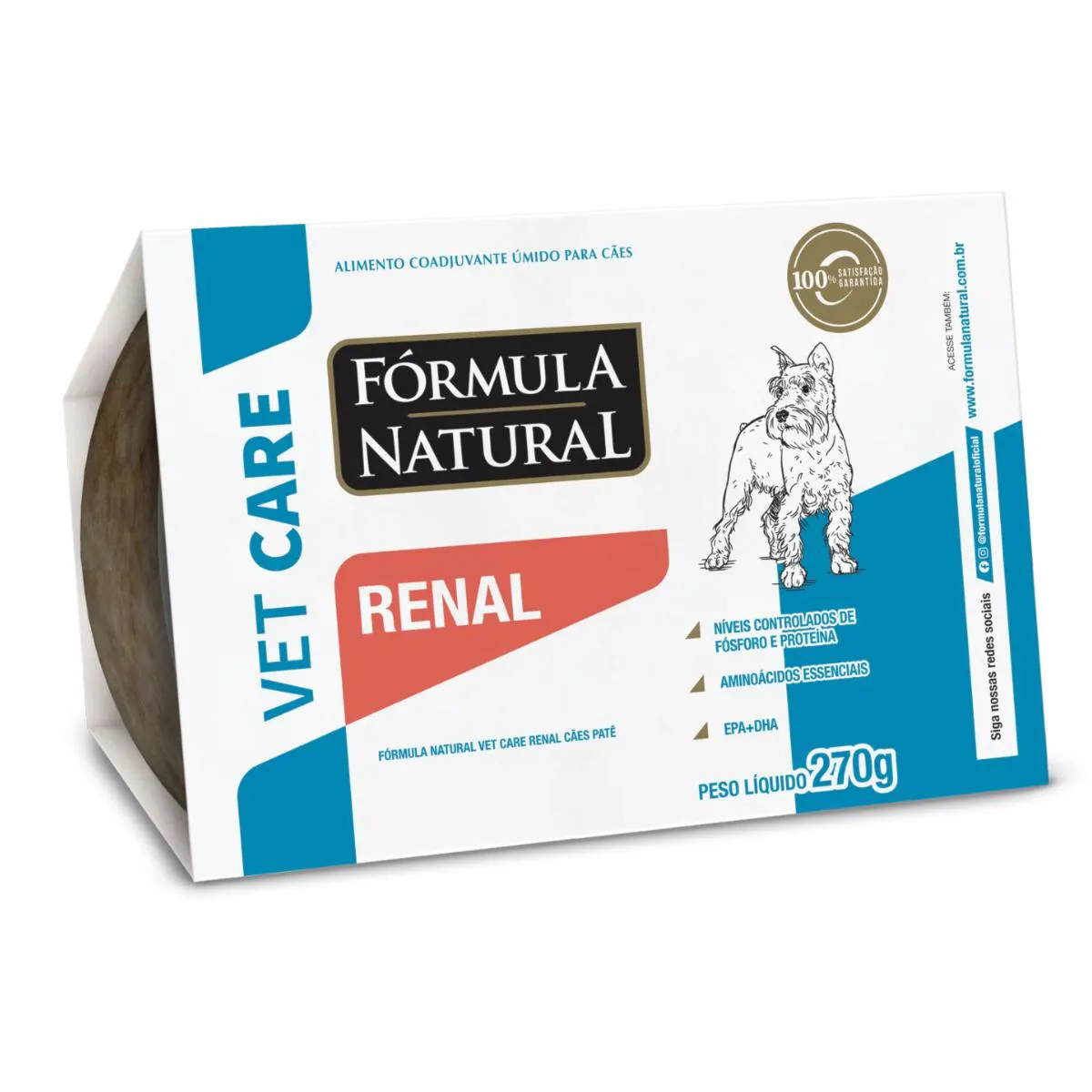 Ração Úmida Fórmula Natural Vet Care Renal 270gr Cães Adultos Objetivo Principal: A ração úmida Fórmula Natural Vet Care Renal é formulada para colaborar na diminuição da progressão da Doença Renal Crônica (DRC) em cães adultos. Níveis Controlados de Fósforo e Proteína: Essenciais para reduzir a carga sobre os rins e retardar a progressão da DRC. Aminoácidos Essenciais: Importantes para a manutenção da saúde dos tecidos e recuperação muscular. Suplementação de EPA e DHA: Ácidos graxos ômega-3 que auxiliam na redução da inflamação e no suporte à saúde renal. Alto Teor de Umidade: Contribui para uma boa hidratação e melhora a palatabilidade, incentivando a ingestão alimentar, especialmente em cães com apetite reduzido. A saúde dos nossos cães é uma prioridade, especialmente quando se trata de doenças crônicas como a Doença Renal Crônica (DRC). A ração úmida Fórmula Natural Vet Care Renal para cães adultos é um alimento coadjuvante cuidadosamente desenvolvido para auxiliar na gestão dessa condição. Com a proposta de colaborar na diminuição da progressão da DRC e melhorar a qualidade de vida dos cães, esta ração combina ingredientes selecionados e formulação especializada. Benefícios para a Saúde Renal O Fórmula Natural Vet Care Renal é projetado para atender às necessidades específicas de cães com doença renal crônica. Um dos aspectos mais importantes deste alimento é o controle rigoroso dos níveis de fósforo e proteína. A redução da ingestão de fósforo ajuda a retardar a progressão da DRC, enquanto os níveis moderados de proteína são essenciais para minimizar a carga de trabalho sobre os rins, sem comprometer a manutenção da massa muscular. Além disso, este alimento inclui uma combinação de aminoácidos essenciais que são fundamentais para a saúde e a recuperação dos tecidos. O suplemento de EPA e DHA, dois ácidos graxos ômega-3, também desempenha um papel crucial na diminuição da inflamação e no suporte à saúde renal. Estes componentes ajudam a melhorar o bem-estar geral e a longevidade dos cães com DRC. A Importância de um Alimento Úmido Co-Ajuvante O alto teor de umidade na ração úmida Fórmula Natural Vet Care Renal é um diferencial importante. Ele não apenas torna o alimento mais palatável, incentivando cães com apetite reduzido a se alimentar melhor, mas também ajuda na hidratação, essencial para a saúde renal. Manter uma boa hidratação é fundamental para cães com problemas renais, pois facilita a função renal e a eliminação de toxinas do organismo. Com uma textura suave e sabor apetitoso, esta ração é ideal para cães que possam ter dificuldades com alimentos secos. A formulação coadjuvante não apenas atende às necessidades dietéticas específicas, mas também oferece conforto e prazer em cada refeição, contribuindo para uma alimentação equilibrada e nutritiva. Composição: Água, carne de mecanicamente separada de aves, fígado suíno, fécula de mandioca, fibra de cana-de-açúcar, levedura de cervejaria inativada desidratada, óleo de salmão, óleo de girassol, ovo em pó, hidrolisado de fígado de aves e miúdos suínos, carragena, goma guar, biomassa de microalgas (Schizochytrium sp.), parede celular de levedura, frutooligossacarídeos, inulina, extrato de yucca, vitaminas (retinol, colecalciferol, acetato de DL-alfa-tocoferol, menadiona bissulfito de sódio, ácido ascórbico, cloridrato de tiamina, riboflavina, piridoxina, cianocobalamina, biotina, pantotenato de cálcio, ácido fólico, niacina, cloreto de colina), minerais (sulfato de ferro, sulfato de cobre, iodato de cálcio, cloreto de potássio, proteinato de zinco, sulfato de zinco, proteinato de manganês, sulfato de manganês, levedura enriquecida com selênio, selenito de sódio), carbonato de cálcio, taurina, metionina, triptofano, glicina, treonina, leucina, valina, isoleucina e concentrado de tocoferóis.
