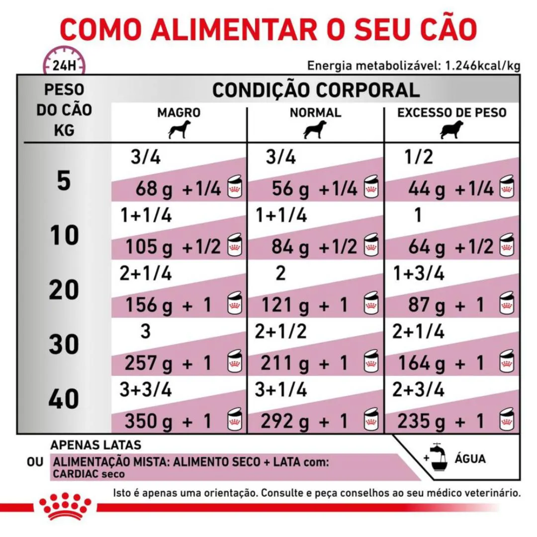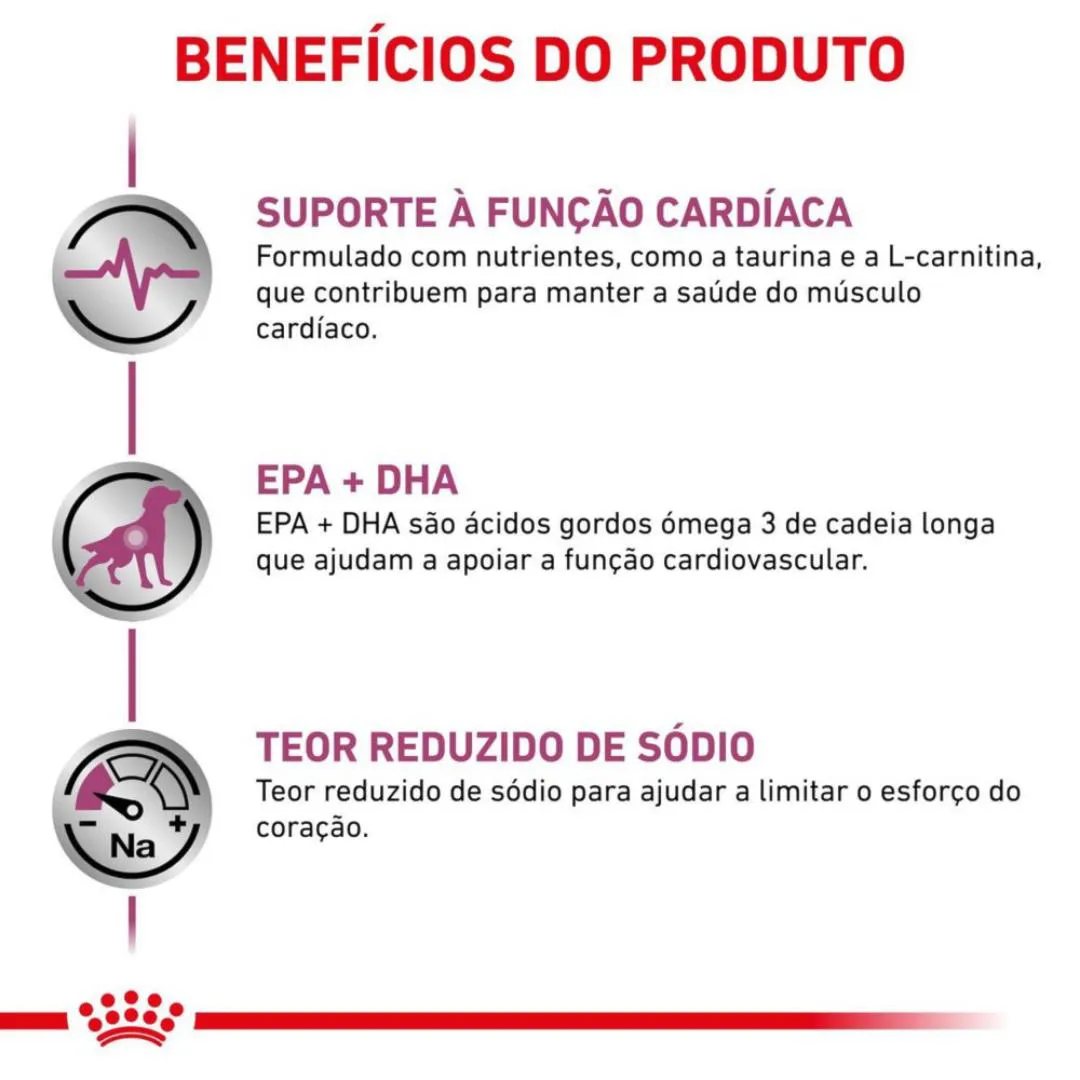 Cães com insuficiência cardíaca costumam apresentar cansaço e, em muitos casos, uma perda de apetite preocupante. A Royal Canin Cardiac Lata é um alimento coadjuvante úmido desenvolvido com precisão para oferecer suporte nutricional imediato à função cardíaca. Sua textura macia e sabor altamente atrativo são fundamentais para garantir que o pet receba a nutrição necessária, mesmo quando está mais debilitado.Com níveis rigorosamente controlados de sódio e nutrientes que fortalecem o músculo cardíaco, esta lata é a aliada perfeita para proporcionar mais conforto e qualidade de vida ao seu melhor amigo.