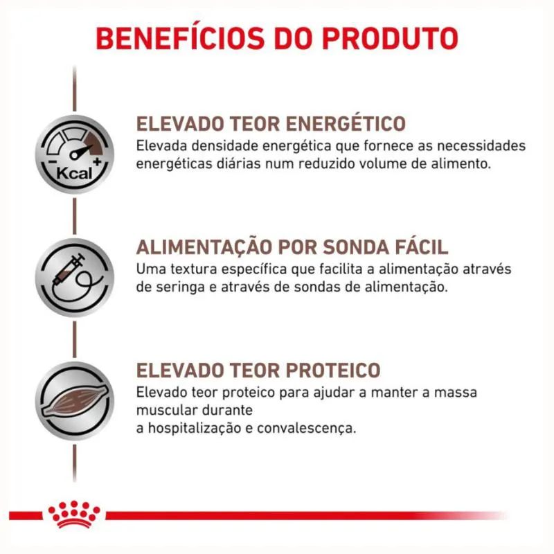 - Indicação: Cães e gatos adultos em convalescença, pós-cirúrgico ou UTI.