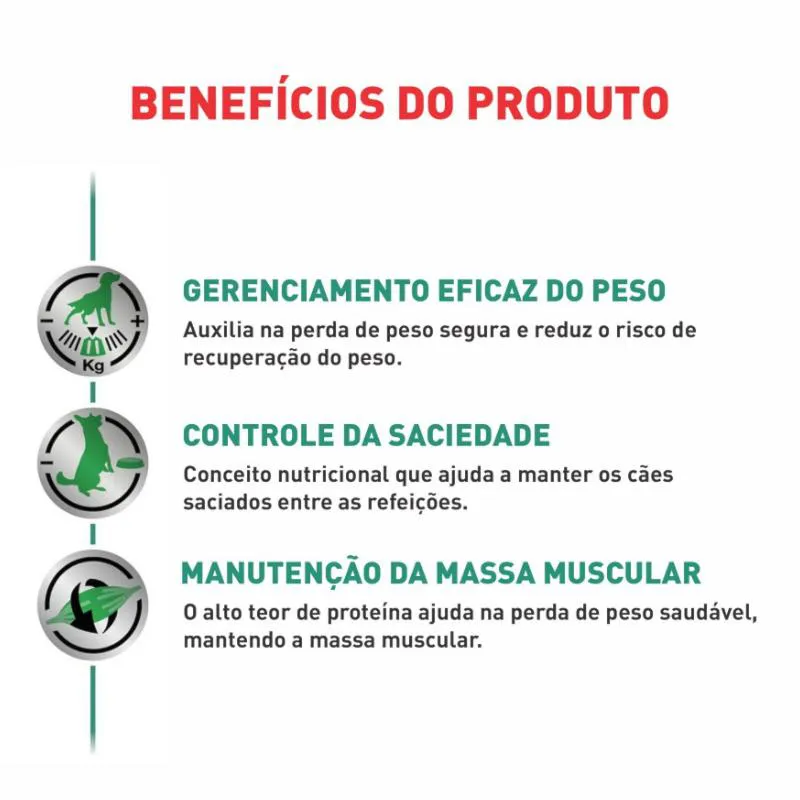 - Indicação: Cães adultos com sobrepeso, obesidade ou diabetes