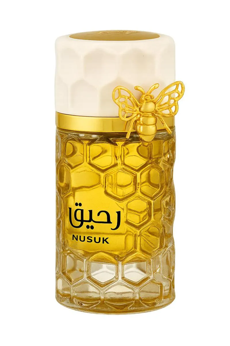 NUSUK A fragrância abre com uma explosão rica de mel, misturada com os sabores suculentos de tamarindo, laranja, limão e damasco. Essa camada superior exala um calor dourado. É instantaneamente reconfortante e revigorante, ideal para dias frios no Reino Unido ou ambientes internos aconchegantes. À medida que o coração da fragrância se desenvolve, notas doces e cremosas de caramelo e coco emergem, suavizadas pela magnólia floral. Esta fase intermediária é indulgente sem ser avassaladora. Doce, feminina, mas ainda assim usável por homens que preferem notas suaves e envolventes. A fragrância, com notas de baunilha absoluta, almíscar e sândalo, deixa uma impressão aveludada, sedutora e duradoura. Permanece na pele como uma doce e suave lembrança.