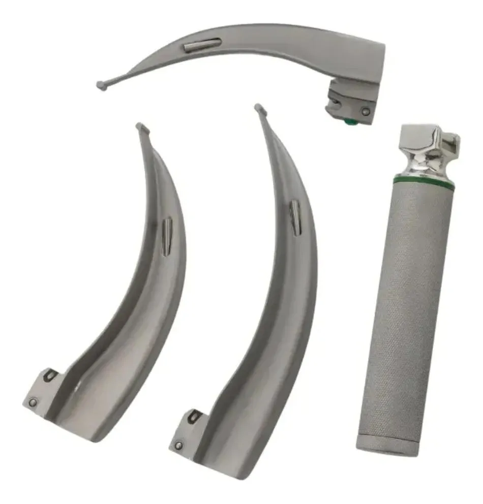 - Selecione a lâmina de laringoscópio adequada ao paciente (neste caso, uma das 3 lâminas fornecidas).