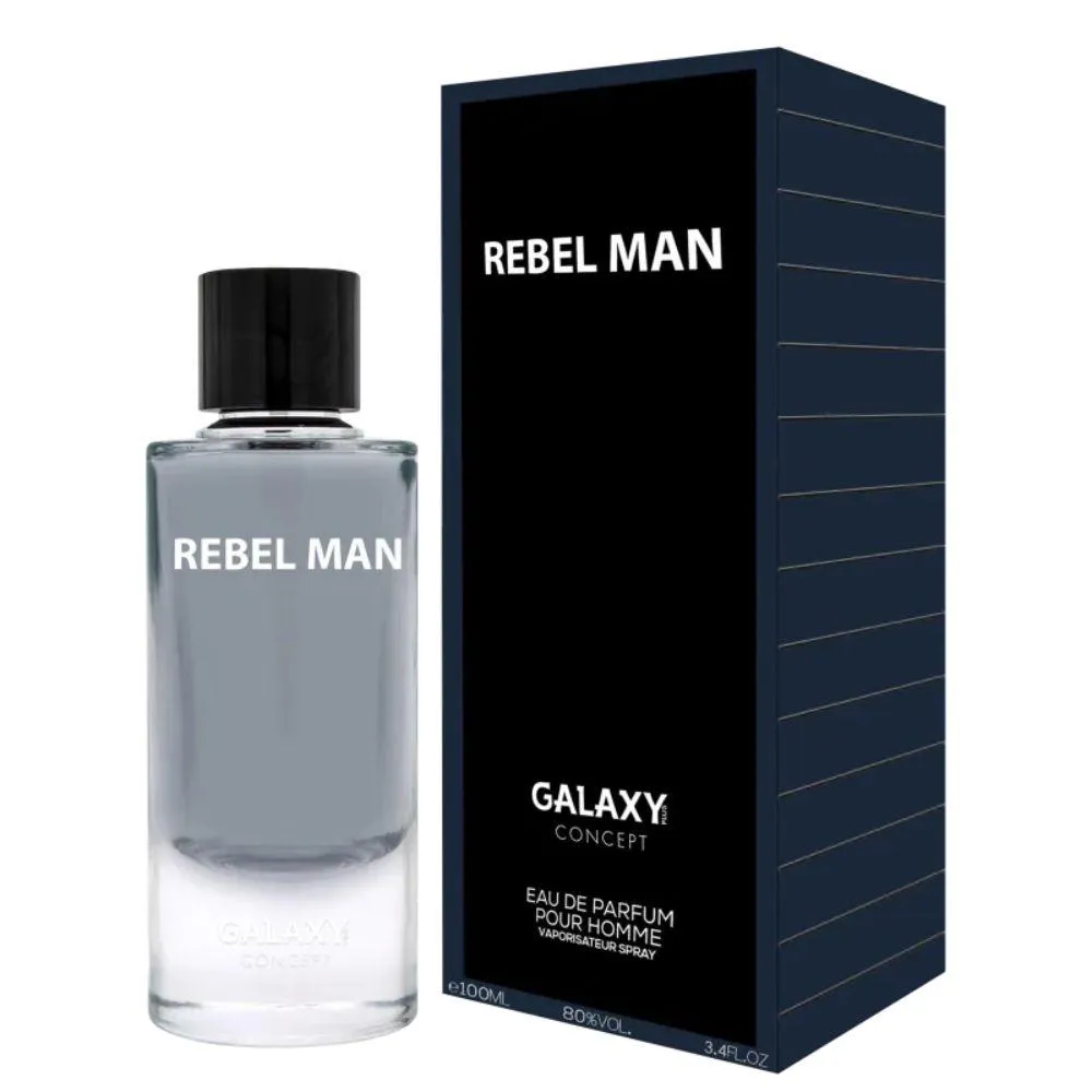 Rebel Men é um perfume Galaxy Plus Concept masculino cítrico aromático. É a tradução da virilidade, coragem e ousadia do homem moderno e arrojado. Ele ama a evolução, a tecnologia, é dinâmico e não consegue ficar parado, está sempre em movimento. Sua presença nunca passa despercebida; ele chega com tudo!