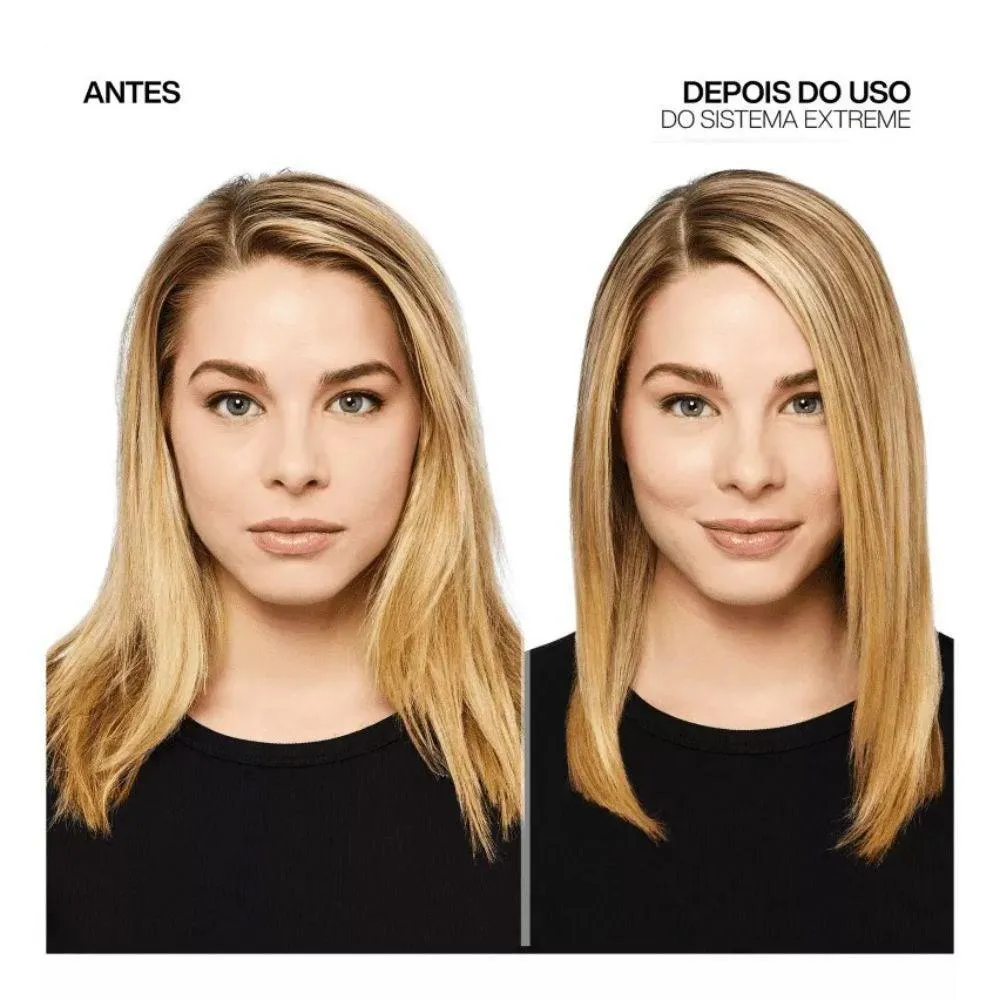 Redken Extreme shampoo 300ml + condicionador 250ml + Redken One United 25 Benefits Leave-in 400ml Kit de tratamento para cabelos danificado e frágeis.Redken Extreme Duo Kit limpa suavemente, desembara a e condiciona os fios. Sua fórmula de alta tecnologia restaura o estado saudável das fibras capilares. Redken Extreme Duo Kit fortalece e aumenta a resistência do cabelo que sofreu severos danos. Ele age desde o interior até a superfície dos fios. Tratamento Multibenefícios para todos os tipos de cabelo. Redken One United 25 Benefits oferece, como o nome mesmo diz, 25 benefícios instantâneos para fios macios, com brilho, protegidos do calor térmico, sem frizz e com efeito duradouro. Seu poder de reparação faz de Redken One United 25 Benefits um tratamento único de brilho, maciez e reparação, que protege dos danos causados pelo uso do secador e chapinha e repara as carências da fibra capilar. Sua textura leve é rapidamente absorvida pelos fios ao mesmo tempo em que fecha as cutículas para um efeito anti-frizz eficaz e duradouro. Ação: Interlock Protein Network (IPN): fortalece a fibra capilar, repara as áreas danificadas e cria um escudo que protege a superfície do fio. FC Complexo Fortalecedor - Composto pela tecnologia 18-MEA e Ceramidas, repara a estrutura dos cabelo danificado e serve de apoio para a rede de proteínas reconstrutoras Interlock. Além disso, forma um filme protetor e de brilho ao redor de cada fio. RCT: nova tecnologia com Proteína da Soja (reforça a raiz), Arginina (condiciona e protege o comprimento), e Sepicap (trata e renova as pontas). O Sepicap é um composto de Proteínas e Aminoácidos encontrado principalmente em produtos com proteção termo-ativada, com propriedades Anti-Aging (que combate e previne o envelhecimento precoce do cabelo), repara e preenche as fissuras da fibra capilar. O RCT é um complexo avançado que trata especificamente cada parte do fio, raiz, comprimento e pontas. O que muda é a maneira que as tecnologias entregam os componentes no fio. O RCT tem Tecnologia Smart, que entrega na raiz, comprimento e pontas a proteína exata que o cabelo precisa. Complexo Catiônico: ingredientes com cargas positivas mantêm as cutículas fechadas para conservar o condicionamento, o desembaraço e a maciez dos fios. Keracare: enriquecido com Xylose, protege a fibra capilar do calor térmico e previne a quebra. Óleo de Coco: conserva a cor dos cabelos coloridos ao mesmo tempo em que deixa os fios mais fáceis de pentear. Conselho de Aplicação: - Aplique o shampoo no cabelo molhado, massageando até fazer espuma. Enxágue abundantemente. Depois, aplique o condicionador. Deixe agir por alguns instantes e enxágue. - Aplique no comprimento dos fios secos ou molhados durante ou após a lavagem. Deixe agir de 1 a 2 minutos e enxágue. Se desejar um condicionamento mais intenso, não enxágue. Use também no dia a dia para renovar o visual do cabelo e antes da escovação para proteger os fios. Redken One United 25 Benefits oferece a seu cabelo: Maleabilidade: - Condicionamento; - Nutrição; - Diminui a porosidade; - Redução do aspecto seco; - Desembaraço; - Ajuda no fortalecimento; - Permite um corte mais prático. Proteção: - Prepara para o penteado; - Evita a quebra causada pela escova; - Seguro para cabelos coloridos e com ombré; - Proteção térmica; - Previne pontas duplas; - Sela as cutículas; - Protege das agressões externas. beleza: - Toque sedoso; - Maciez; - Brilho; - Controla o frizz; - Anti-estática; - Deixa a secagem mais rápida; - Renova o visual; - Resultados instantâneos; - Não pesa. Resultado: Limpa e restaura a força do cabelo danificado, para que recupere o seu aspecto saudável de dentro para fora. Cabelo forte, resistente, saudável, brilhante, renovado, com a textura dos fios macia, protegido e longe do frizz.