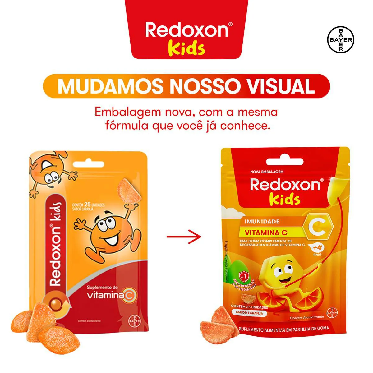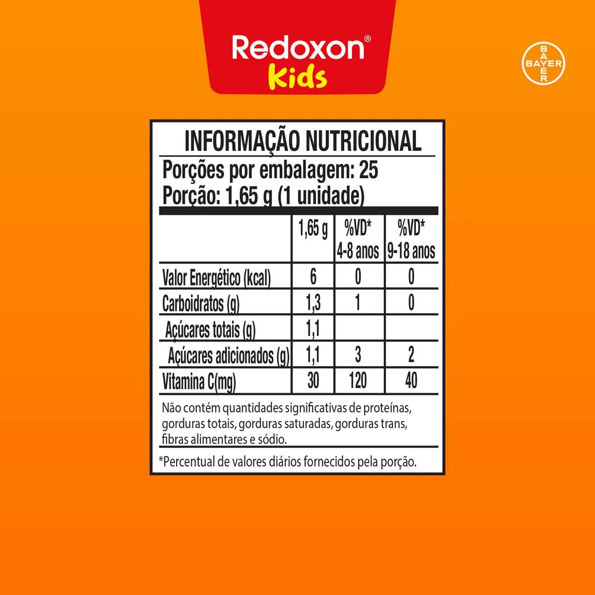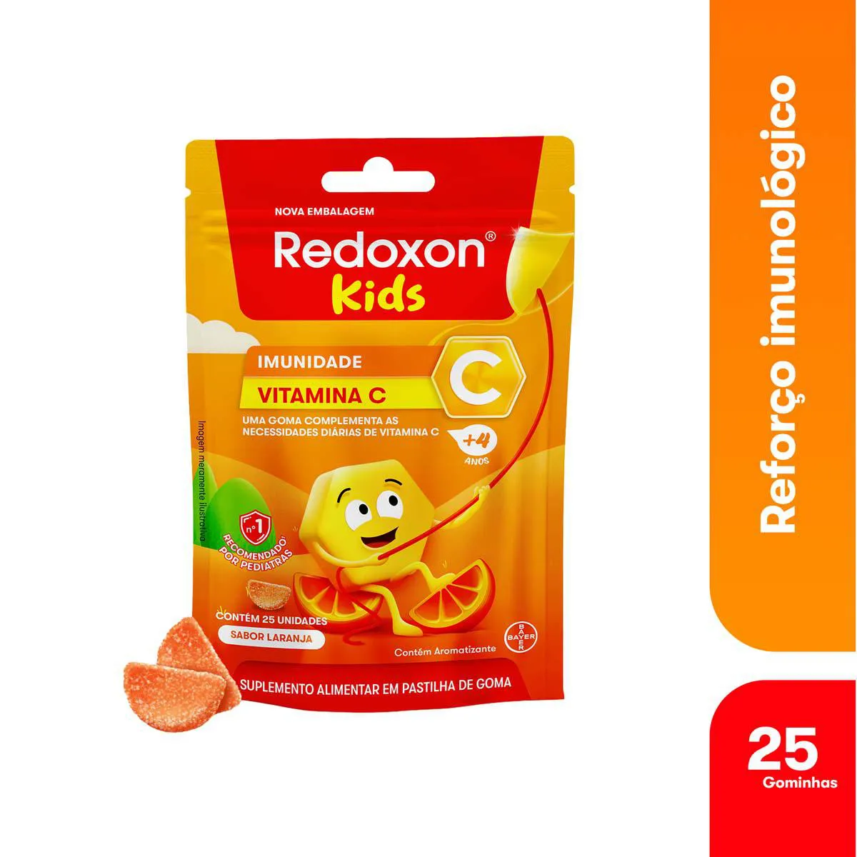 Dessa forma, Redoxitos Laranja supre 100% da necessidade de vitamina C no organismo dos pequenos, o que ajuda a fortalecer a imunidade para um crescimento mais saudável.