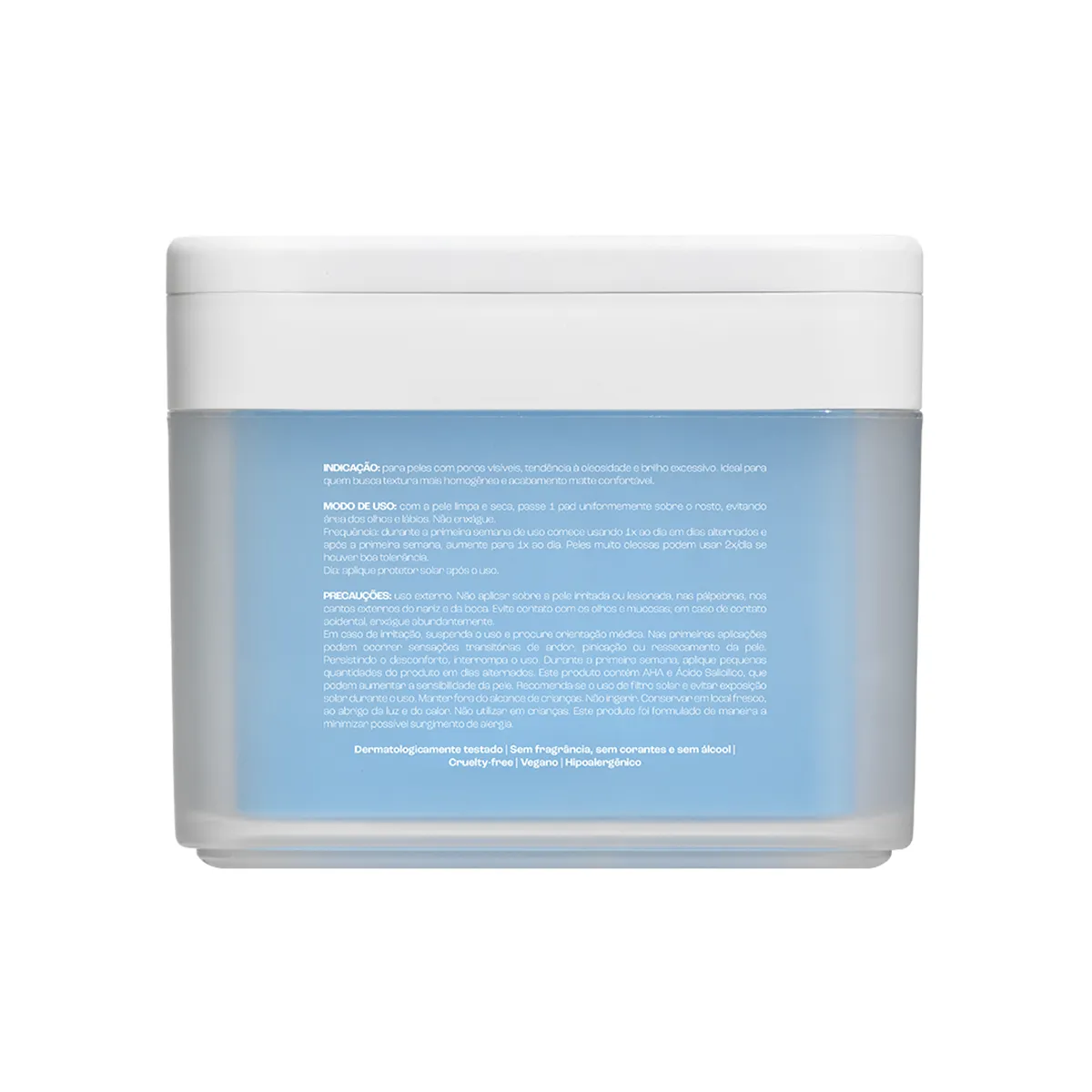 - Contém Ácido Salicílico e AHA que promovem renovação e textura mais uniforme.