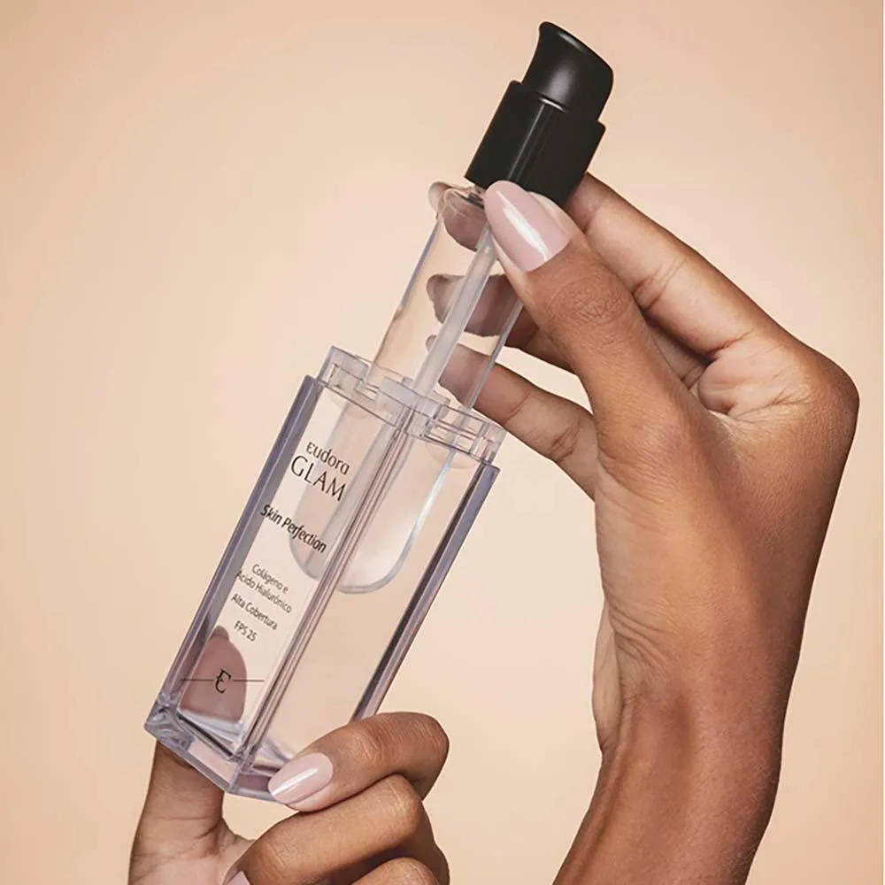 Com a Tecnologia de Eudora a Eudora Glam Skin Perfection Base Líquida possui uma fórmula diferenciada que proporciona uma alta cobertura na sua aplicação, com tratamento que tem como objetivo recuperar a elasticidade da pele, preencher e reduzir linhas finas. Com longa duração também possui fator de proteção.