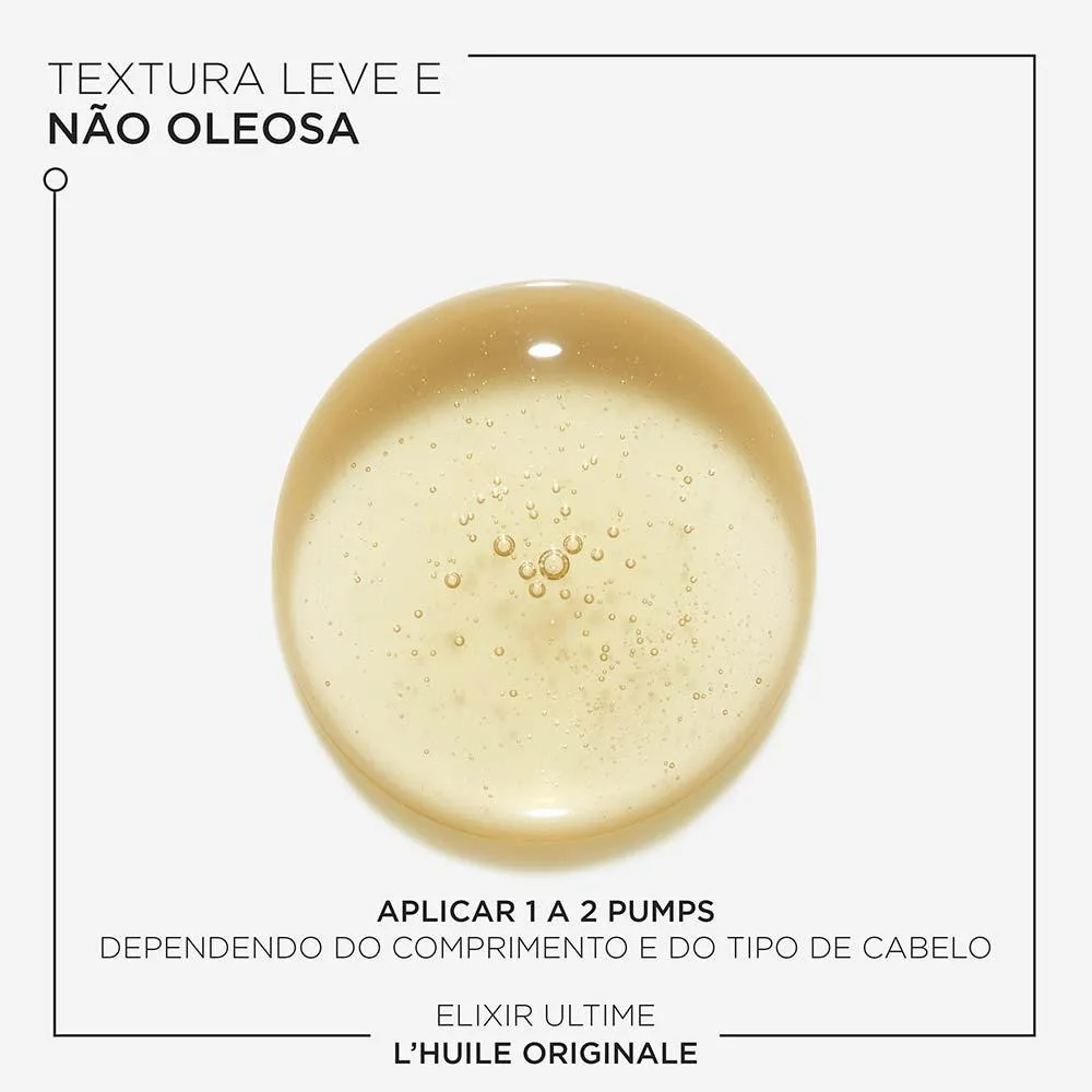 O Elixir Ultime L'huile Originale é um óleo de tratamento avançado desenvolvido especialmente para nutrir profundamente todos os tipos de cabelo, com foco especial nos fios sem brilho.