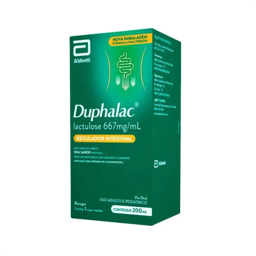 Regulador Intestinal Duphalac Solução 200ml – AbbottO Duphalac é um regulador intestinal de uso oral indicado para o tratamento da prisão de ventre (constipação intestinal). Sua fórmula contém lactulose, um ativo que atua amolecendo as fezes e estimulando o funcionamento natural do intestino, proporcionando alívio suave e eficaz.Ideal para uso diário, o Duphalac ajuda a restabelecer o ritmo intestinal sem causar irritação ou dependência. É uma solução líquida, transparente e de sabor adocicado, fácil de administrar, podendo ser ingerida pura ou diluída em água, suco ou leite.Benefícios:
