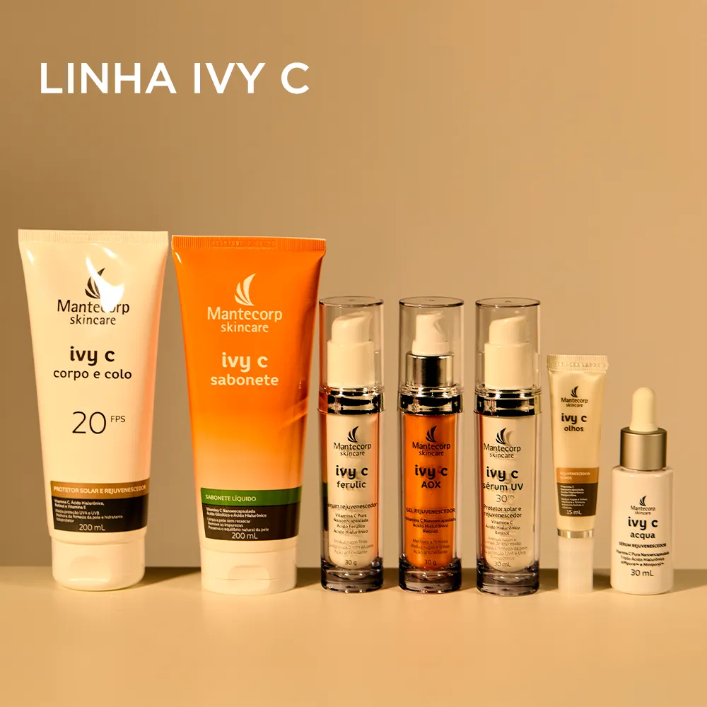 O IVY C Corpo e Colo é um sérum rejuvenescedor corporal formulado com vitamina c nanoencapsulada, Ácido Hialurônico, Retinol e vitamina e. Serve para estimular a produção de colágeno, aumentar a renovação celular, hidratar e proteger a pele, reduzindo linhas finas, uniformizando o tom e melhorando a firmeza da pele, deixando-a macia e iluminada.Benefícios