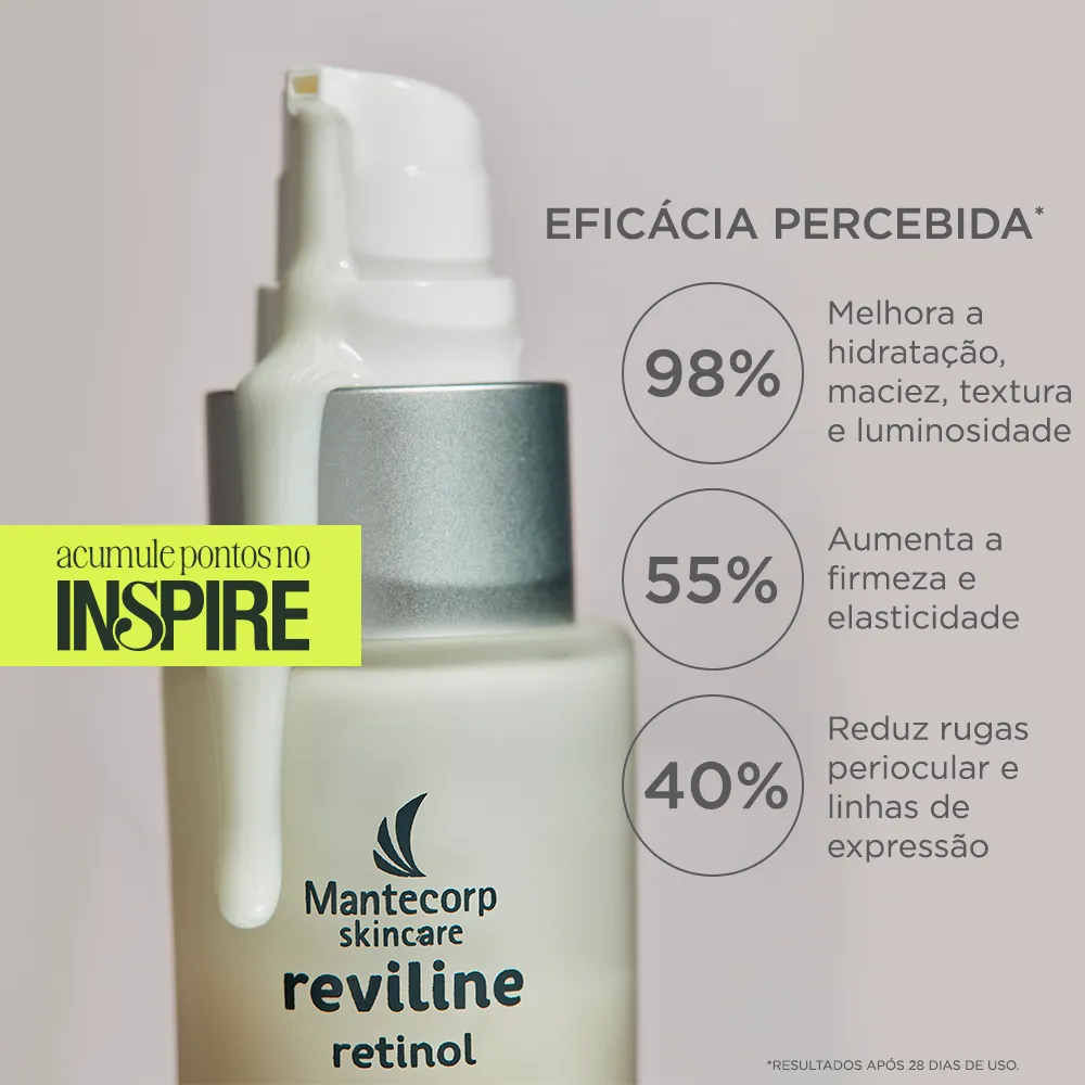 Reviline Retinol é um sérum rejuvenescedor com formulação única e potente, para uma ação rejuvenescedora intensa com resultados visíveis e duradouros.