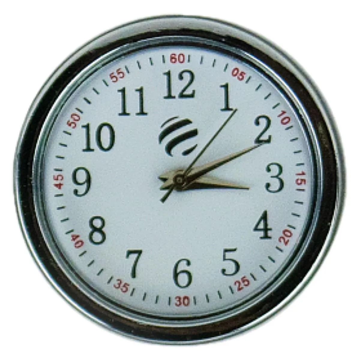 - Relógio analógico de lapela com broche para fixação em tecidos.