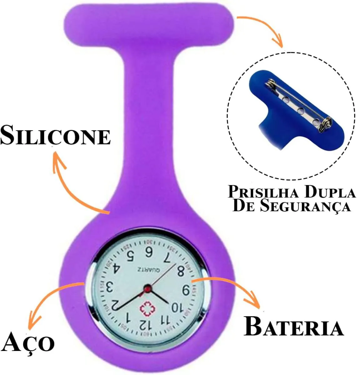 Relógio de Lapela para Enfermagem Bolso Roxo