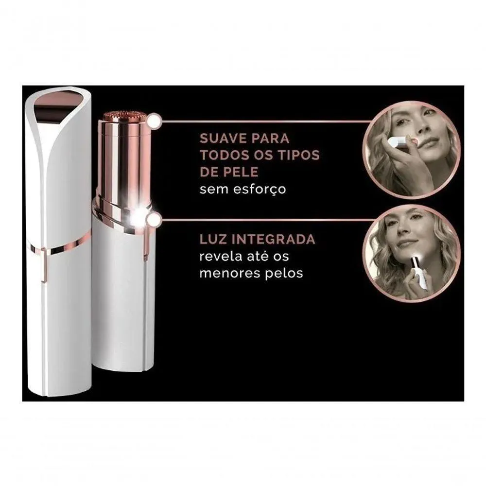 corpo.Remove os pelos sem dor.O depilador chegou para mudar a vida das mulheres ele depila os pelos indesejados, é portátil e cabe em qualquer bolsa.Especificações:Material: plásticoBateria: Carregamento USBTamanho: 10 cm x 2 cmCores: Branco com Rose Gold, Preto ou rosa.Será enviada a cor disponível em estoque no momento da compra.Itens Inclusos:1 Depilador de Buço 1 Escova de limpeza1 Manual do Usuário