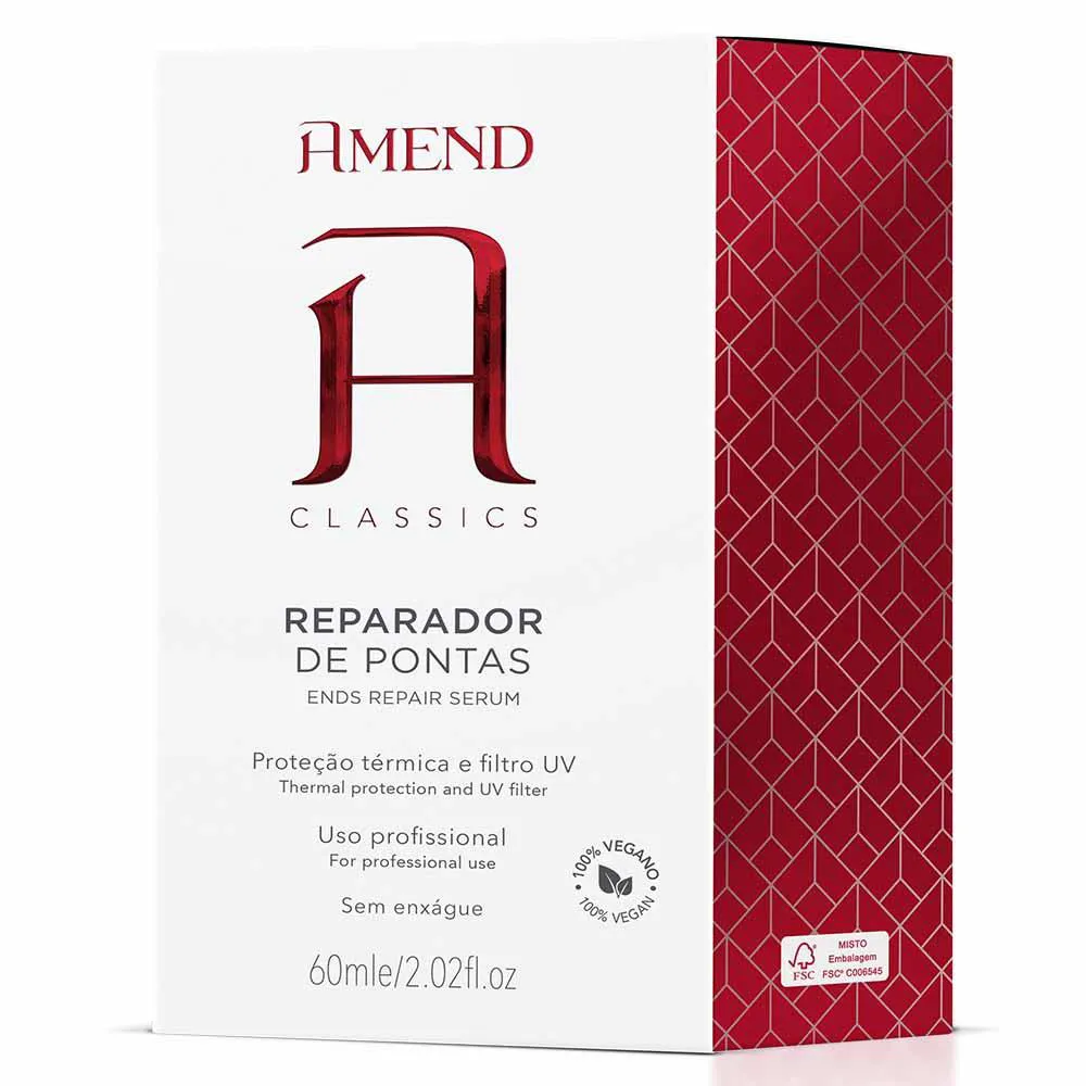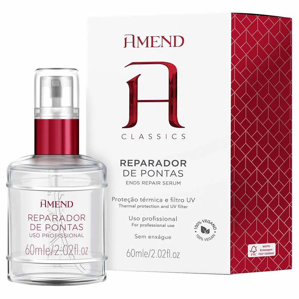 Reparador de Pontas Amend combina silicones especiais para unir as pontas duplas e deixar os fios mais maleáveis. Com ação disciplinante, controla a umidade e reduz o frizz. Realça o brilho e protege contra as agressões externas, como os raios UV.