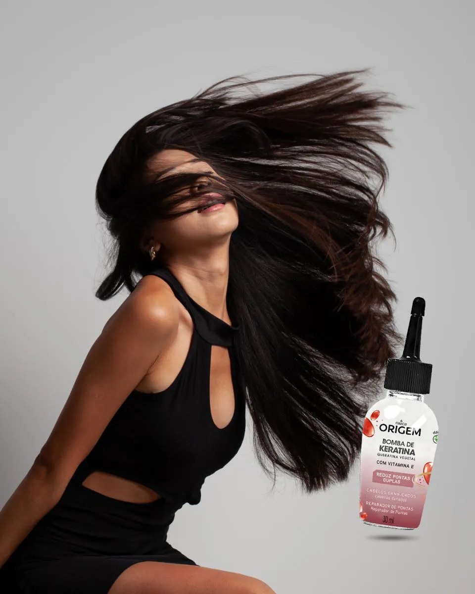 O reparador de pontas Origem Bomba de Queratina da Nazca 30ml serve para reduzir pontas duplas, fortalecer e restaurar cabelos danificados e enfraquecidos. Sua fórmula, com queratina e vitaminas, ajuda a reparar a fibra capilar, proporcionando mais força, maciez e brilho aos fios, e é ideal para finalizar o look alinhando as madeixas.