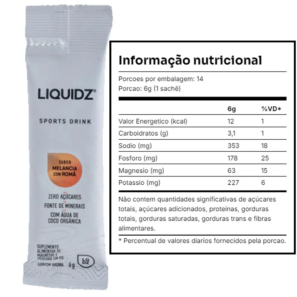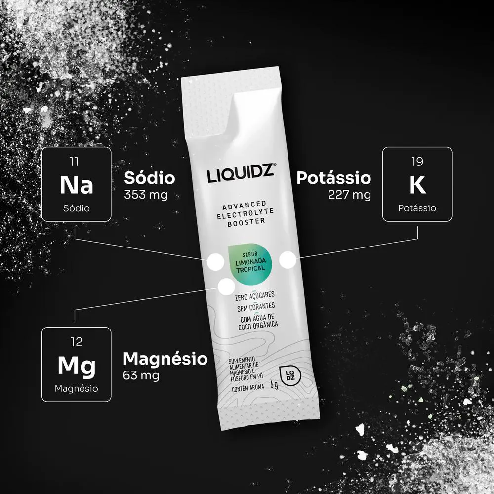 LIQUIDZ é um suplemento de eletrólitos feito para potencializar sua hidratação diária. Combina os principais eletrólitos essenciais como sódio, potássio e magnésio. Esses minerais são fundamentais para a produção de energia na célula, melhorar a função muscular e nervosa e manter seu corpo hidratado, mesmo depois de treino pesado e em dias quentes. LIQUIDZ é formulado para ser consumido diariamente, especialmente ao acordar. Consuma antes de atividades físicas para melhorar sua performance, ou depois de um treino forte para recuperar e ter mais disposição durante o dia. Hidratação Rápida e Eficaz Fornece uma combinação balanceada de eletrólitos que facilita a absorção de água a nível celular, promovendo uma hidratação mais rápida e eficaz que apenas água. Aumento de Energia e Disposição Ajuda a combater a fadiga e a falta de energia causadas pela desidratação. Especialmente após atividades físicas intensas ou dias quentes. Melhora na Recuperação Muscular, A presença de sódio, potássio ajuda a prevenir e diminuir cãibras musculares, e a presença do magnésio no desempenho muscular e na recuperação pós-exercício. Apoio à Função Cognitiva Mantém o equilíbrio dos eletrólitos, essencial para funções cognitivas como foco e concentração, prevenindo sintomas de desidratação que afetam a cognição. Alívio de Dores de Cabeça Contribui para a manutenção do volume sanguíneo e a prevenção da contração dos vasos sanguíneos no cérebro, reduzindo a incidência de dores de cabeça causadas pela desidratação.