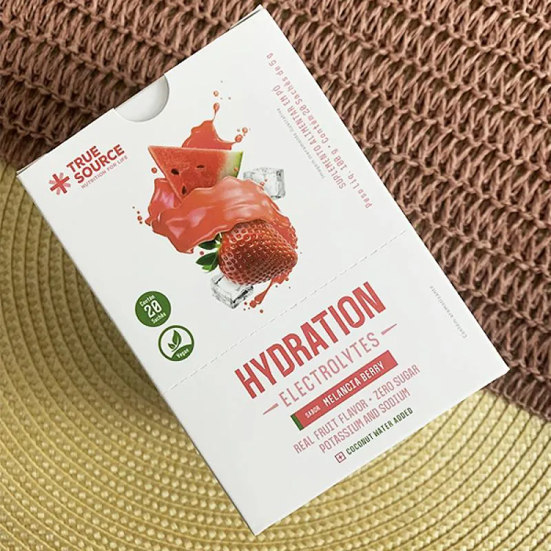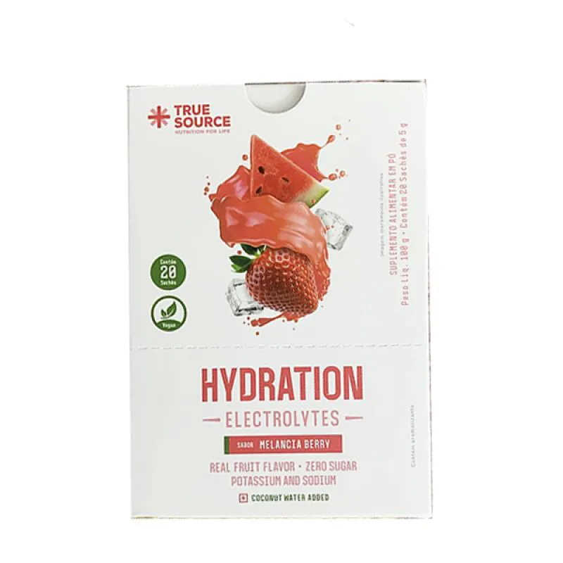 O que é e para que serve o Repositor Eletrolítico Hydration Electrolytes Melancia Berry 5G True Source 20 Sachês?