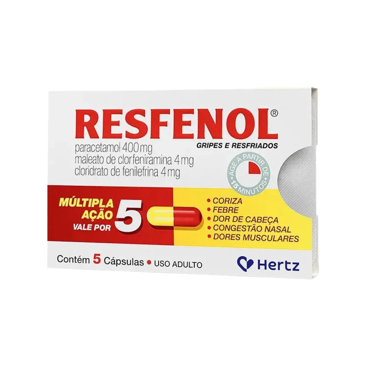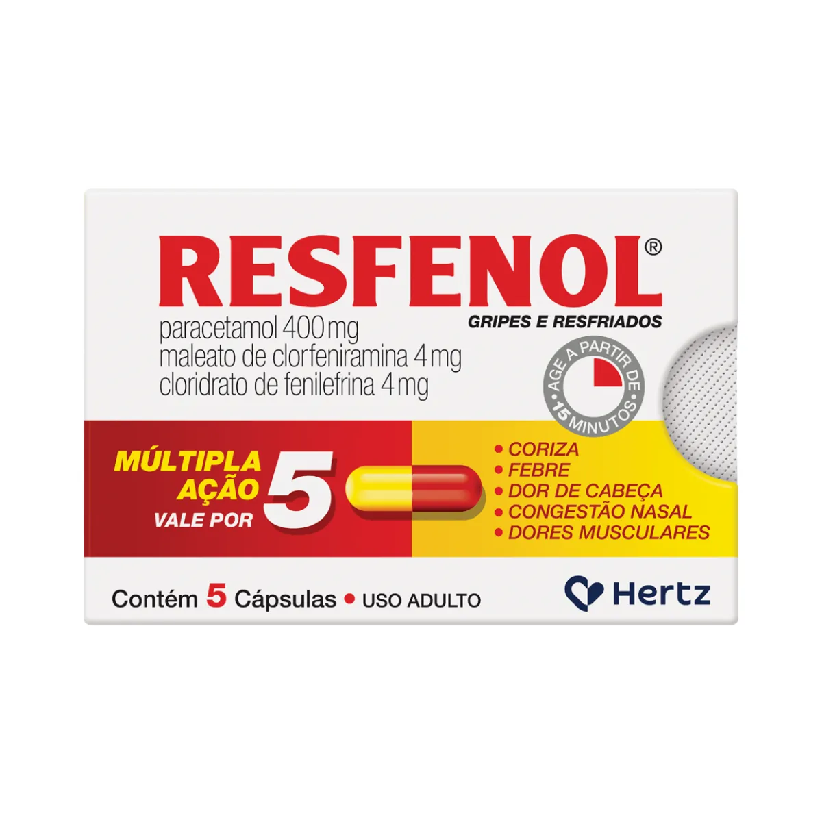 Resfenol Paracetamol 400mg + Cloridrato Fenillefrina 4mg + Maleato de Clorfeniramina 4mg 5 cápsulas