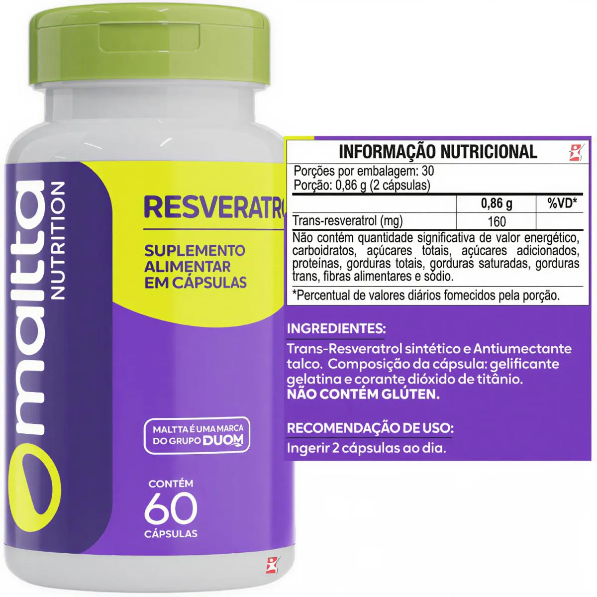 Resveratrol 160Mg Trans-Resveratrol 60 Cápsulas - Maltta Nutrition