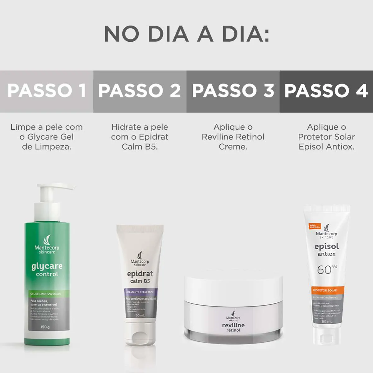 Após limpar e secar a pele, aplique uma camada uniforme de Reviline Retinol Creme no rosto, colo e pescoço, massageando até completa absorção. Utilize duas vezes ao dia ou conforme orientação médica.