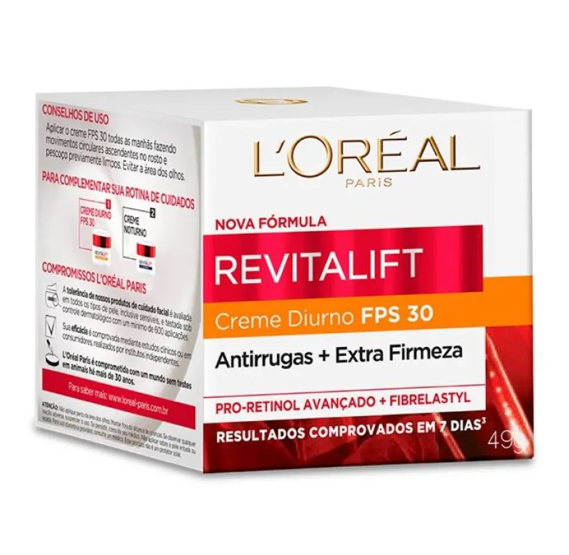 O creme Revitalift Diurno possui textura leve e nutritiva para tratamento das rugas, firmeza da pele e contornos definidos. Com proteção solar de 18 FPS, também mantem a pele protegida dos raios UV e é perfeito para uso no dia a dia.