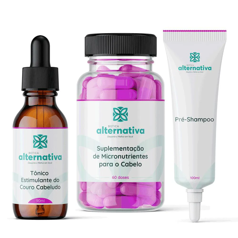 Com o Kit Saúde Capilar, descubra o segredo para madeixas mais saudáveis e radiantes! Este trio poderoso foi desenvolvido especialmente para nutrir os cabelos de dentro para fora, proporcionando força, crescimento acelerado e equilíbrio capilar. A Fórmula 1 oferece uma combinação rica de micronutrientes como Biotina, Zinco Quelato e Metilsulfonilmetano, que juntos promovem a nutrição ideal para os fios, garantindo vitalidade e resistência ao combate diário dos poluentes. Já a Fórmula 2, com ingredientes de alta permeação como Cafeína e Capilia Longa, revitaliza o couro cabeludo ao estimular o crescimento desde a raiz por meio do aumento da eficiência dos folículos capilares, oferecendo volume e densidade. E para finalizar, a Fórmula 3, um pré-shampoo revolucionário, protege os cabelos dos efeitos indesejados dos sulfatos, preparando-os para a lavagem, enquanto controla a oleosidade graças a agentes como Defenscalp e Niacinamida. Imagine começar e terminar o seu dia sabendo que está cuidando do que tem de mais precioso: sua saúde capilar. Este kit não apenas atende, mas supera expectativas oferecendo um tratamento completo para todas as fases e tipos de cabelo. Ideal para adolescentes, adultos, homens e mulheres que buscam cabelos mais fortes e exuberantes! Não perca mais tempo, transforme seu ritual diário e desfrute dos benefícios de um produto inovador que se compromete com resultados eficazes e satisfatórios. Escolha hoje mesmo o Kit Saúde Capilar da Botica Alternativa e eleve a sua rotina de cuidados capilares a um novo patamar!