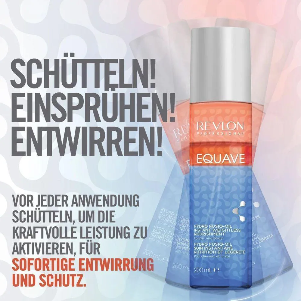 Experimente a combinação perfeita de hidratação e nutrição profunda com o Revlon Professional Equave 3 Phases Hydro Fusio-Oil Instant Conditioner. Este condicionador trifásico revolucionário proporciona um tratamento instantâneo para cabelos secos e danificados, oferecendo uma fusão de óleos nutritivos que hidrata profundamente, desembaraça e deixa os fios macios e sedosos, sem pesar.Com três fases distintas de ação, ele nutre e protege a fibra capilar enquanto proporciona brilho intenso e controle do frizz. Sua fórmula enriquecida com óleos naturais fortalece os cabelos, mantendo-os saudáveis e revitalizados. O spray facilita a aplicação, garantindo desembaraço instantâneo e um toque leve e suave.Benefícios:-Hidratação profunda e nutrição intensa-Desembaraço instantâneo sem pesar os fios-Controle do frizz e brilho radiante-Fortalece e revitaliza a fibra capilar-Fórmula leve com óleos naturais para cabelos saudáveis e sedososO Revlon Equave 3 Phases Hydro Fusio-Oil Conditioner é o aliado perfeito para quem busca uma solução rápida e eficaz para cabelos ressecados e sem vida, deixando-os incrivelmente macios, hidratados e com um brilho natural.*Imagens Meramente Ilustrativas.*As cores do produto podem variar de acordo com o monitor, a iluminação do ambiente e a sua percepção visual.*Verifique nossas políticas internas para que não haja nenhuma dúvida no processo de entrega ao finalizar a compra.