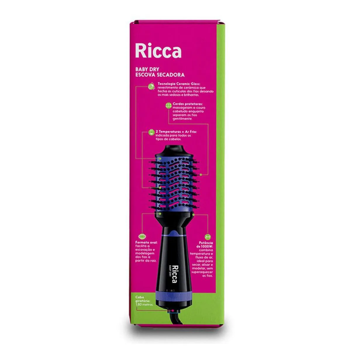 Ricca Baby Dry Escova Secadora (3 em 1: Seca, Alisa e Modela)