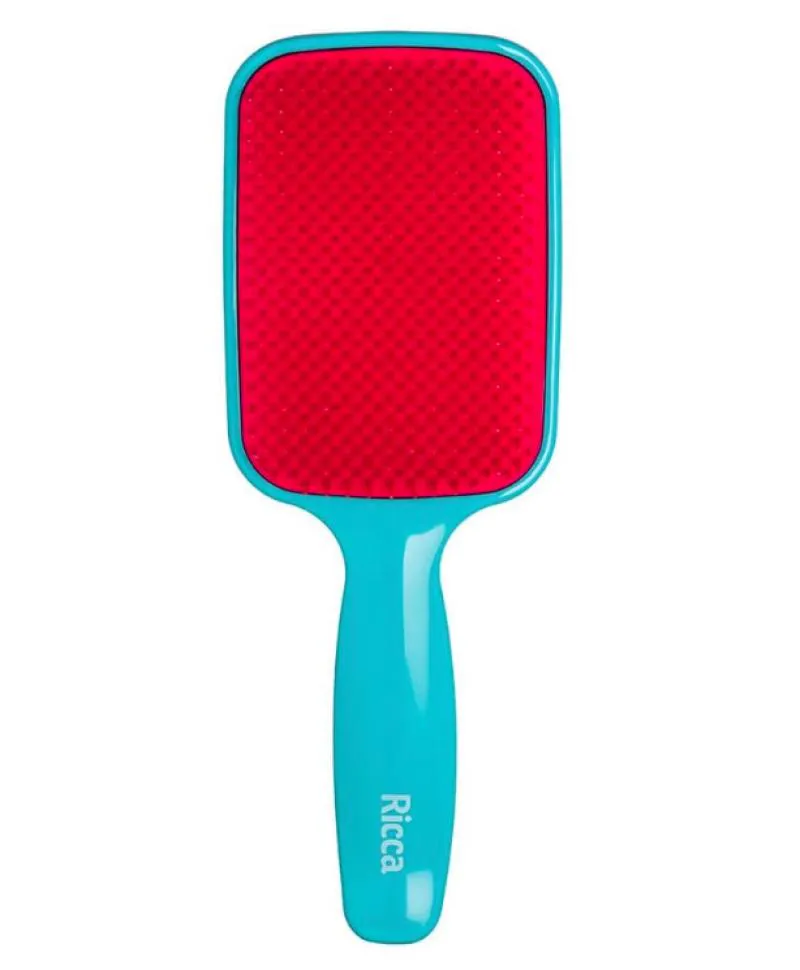 A Ricca - Escova Raquete Flex Blue é uma escova de cabelo com cerdas flexíveis de dupla altura, projetada para desembaraçar cabelos de forma delicada. Suas cerdas especialmente desenvolvidas permitem um deslizamento suave pelas mechas, minimizando danos aos fios.