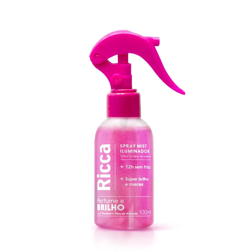 O Spray Iluminador Ricca é um produto capilar com fórmula enriquecida com Pantenol e Óleo de Abacate, desenvolvido para cuidar e embelezar os cabelos. Sua composição proporciona maciez, brilho e controle de frizz.