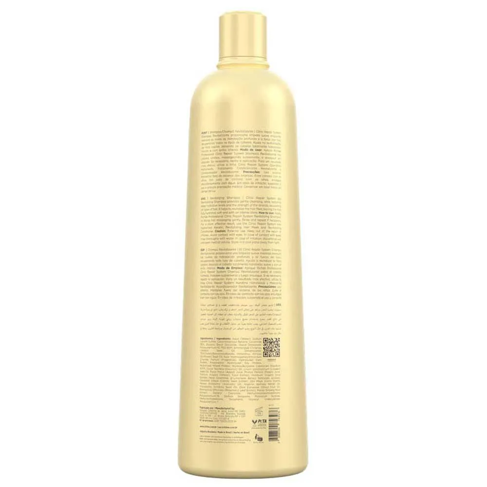 Clinic Repair System shampoo Revitalizante Bioavançado proporciona limpeza suave enquanto restaura os níveis de hidratação do cabelo. Ajuda na revitalização dos cabelos secos, deixando-os hidratados, macios, maleáveis e com elasticidade.