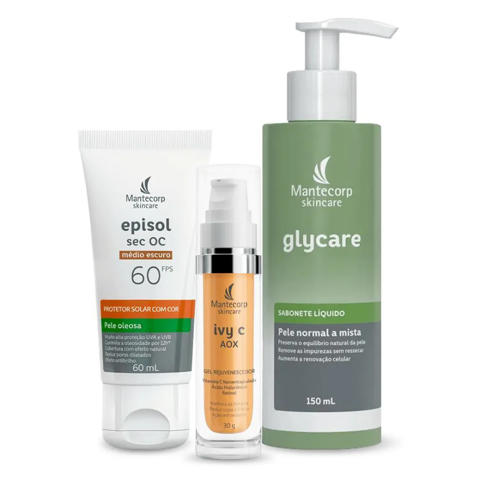 O Kit Pele mista é composto por Glycare sabonete, Ivy C Aox e Episol SEC OC que veio para tornar sua rotina de skincare mais prática:
